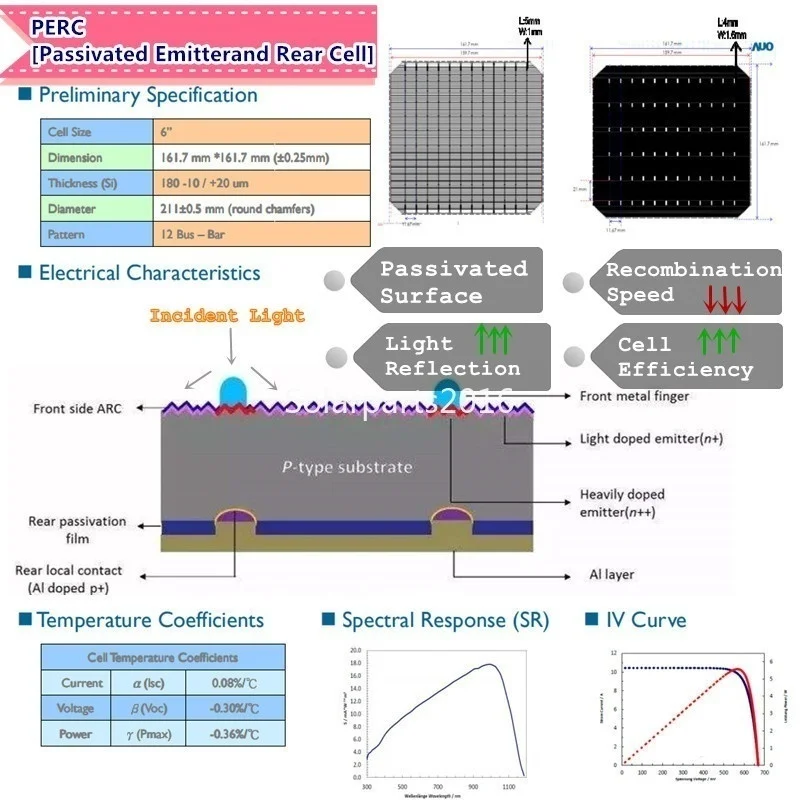Передовые технологии обратных контактных клеток обеспечивают гибкость и повышенную мощность на квадратный фут. Уникальный Бескаркасный дизайн включает в себя шесть металлических усиленных монтажных отверстий для легкой установки Строгий контроль качества для соответствия самым высоким международным стандартам CE,TUV Высокий коэффициент пропускания, гибкий Ламинирующий материал менее подвержен растрескиванию, чем традиционное стекло Выдающаяся электрическая производительность при высокой температуре и слабый светильник Положительные и отрицательные провода оснащены PV соединителями Два байпасных диода минимизируют падение производительности из-за частичного оттенка Легко настроить: Можно удобно разместить на изогнутых твердых поверхностях Легче и тоньше, толщина всего 3 мм. Встроенный блокирующий диод для предотвращения разрядки батареи в ночное время Все погодные условия. Они водонепроницаемы и устойчивы к ультрафиолетовому излучению. Распределительная коробка в горшке