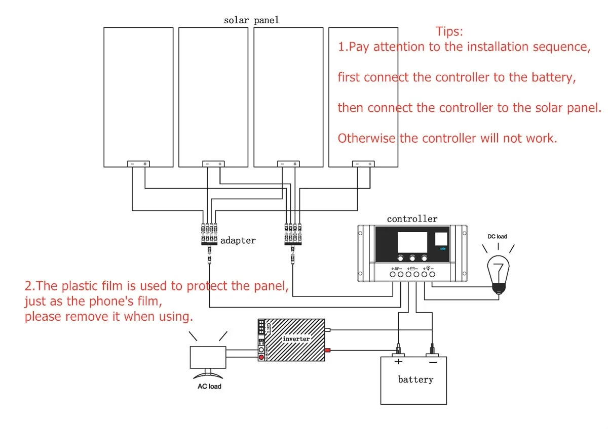 1. 2шт 100 Вт гибкая soalr панель 2. 1 комплект 3 м красный/черный кабель с зажимом аллигатора (1*2,5 мм2) 3. 1 комплект 3M черный кабель с PV соединением (1*2.5mm2) 4. 1 комплект 2 в 1 адаптер 5. 1 шт. 20A контроллер