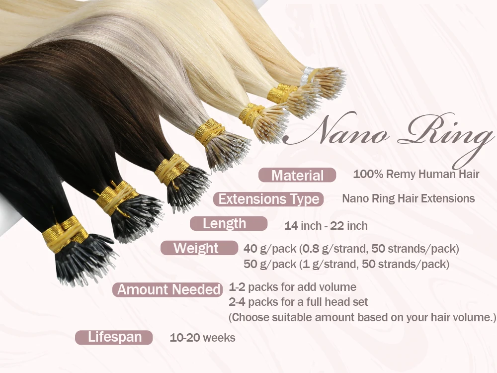 Материал: 100% Человеческие волосы RemyТип наращивания: накладные волосы с нано кольцомДлина: 14-22 дюймаВес: 40 г/упак. (0,8 г/прядь, 50 шт./упаковка)50 г/упак. (1 г/прядь, 50 прядей/упаковка)Необходимое количество: 1-2 упаковки для добавления объема2-4 упаковки для комплекта с полной головкой(Выберите подходящее количество на основе объема волос.)Срок службы: 10-20 недельФорма волос: шелковистые прямые волосыЦвет волос: все цвета в наличии, если вы хотите заказать другой цвет, свяжитесь с нами.Время доставки: Доставка в течение 72 часов, любые проблемы или потребности, отправьте нам сообщение напрямую. Условия доставки: доставка через почтовое отделение, DHL, FedEx, экспресс-доставка