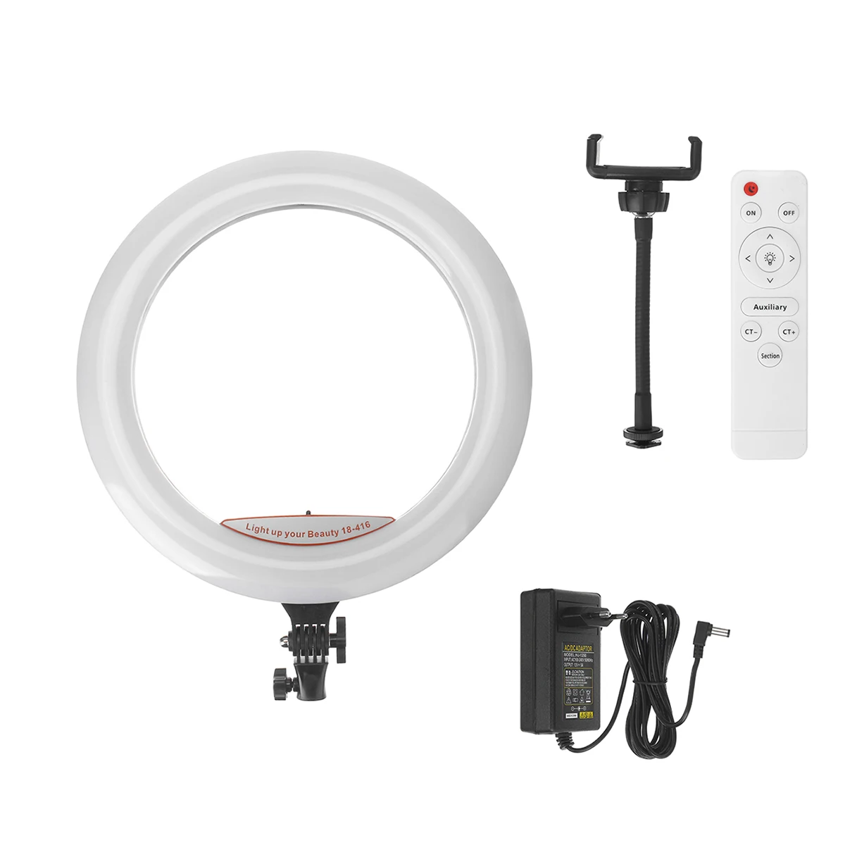 Светодиодный кольцевой светильник для селфи, лампа 18 дюймов с держателем для телефона, с USB-разъемом, подходит для нанесения макияжа, Youtube, прямых трансляций