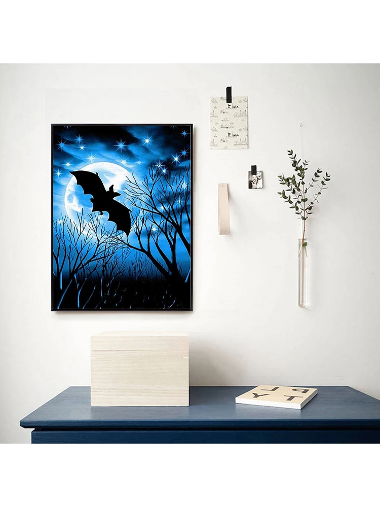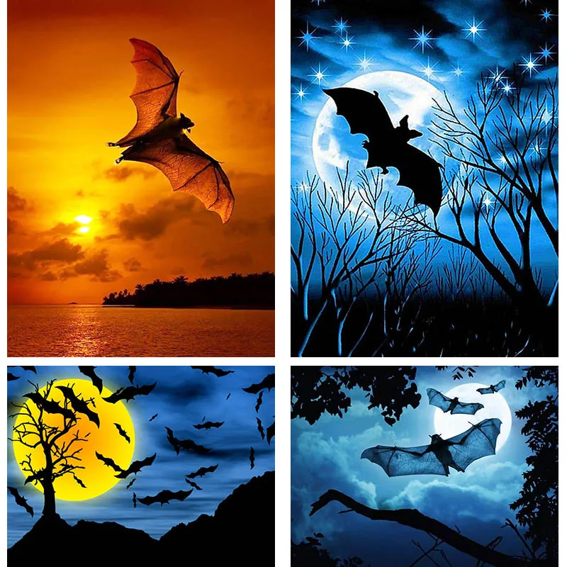 Алмазная живопись, квадратная круглая 5D картина, закат, ночная сцена, алмазная вышивка, тень летучей мыши, вышивка крестиком, хобби, домашний декор S36