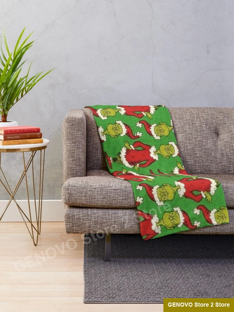 Рождественское одеяло Grinch с узором, флисовое плюшевое одеяло, s на кроватьдиван, спальный чехол, постельное белье, простыня для детей и взрослых