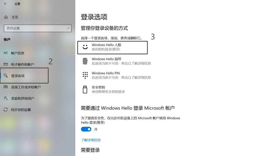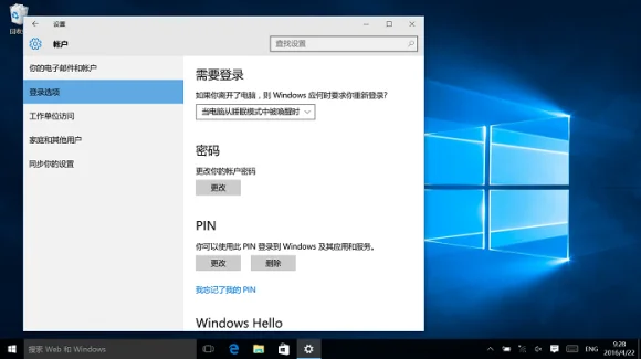 6. Вариант входа в систему и нажмите следующую кнопку Windows Hello (здесь предполагается, что клиент уже установил пароль и PIN-код)