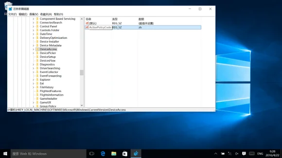 2. Перейдите в HKLM \ Software \ Microsoft \ Windows \ текущая версия \ deviceaccess \ activepolicy code-удалите этот ключ.