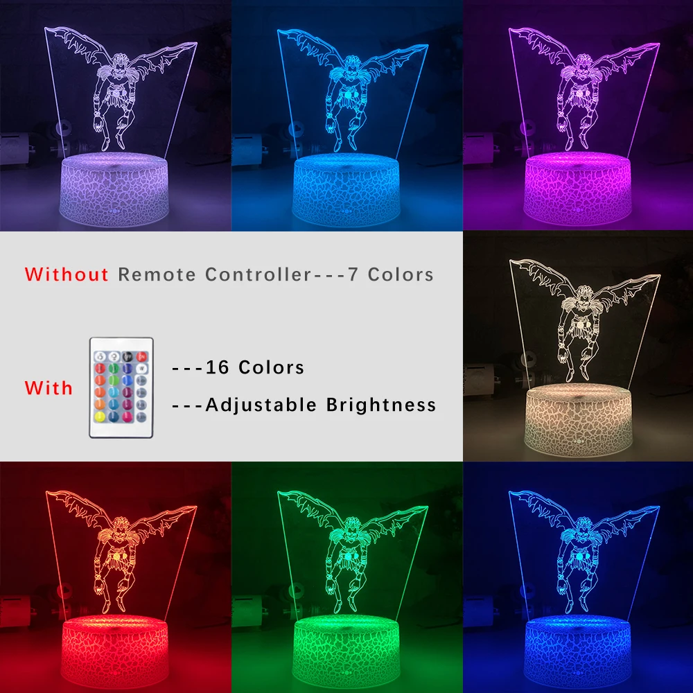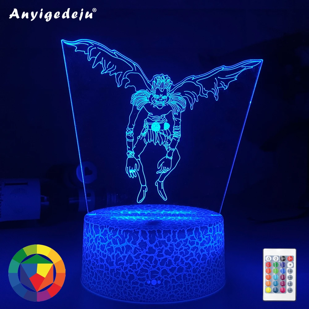 Детский ночник Death Note, светодиодный ночсветильник с изменением цвета для украшения комнаты, японская манга, подарки, 3d иллюзионная лампа, фигурка рюка