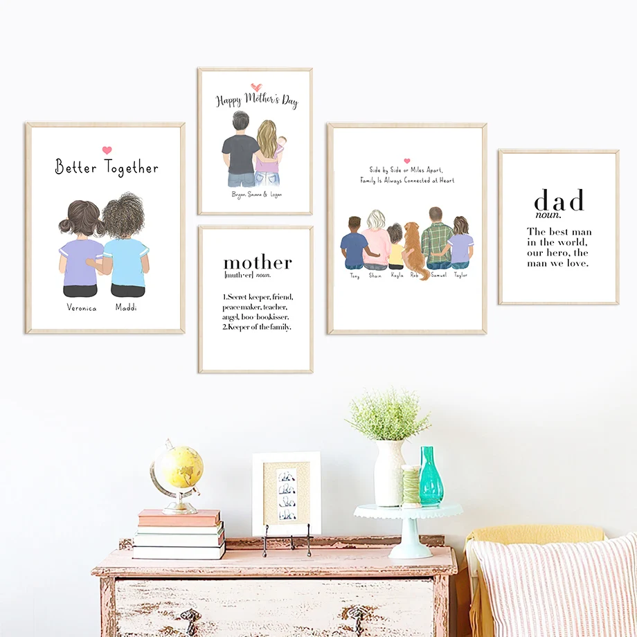 Настенные картины на холсте с изображением семьи, папы, матери, ребенка, сестры, домашнего питомца, скандинавские постеры и принты, настенные картины, декор для детской комнаты