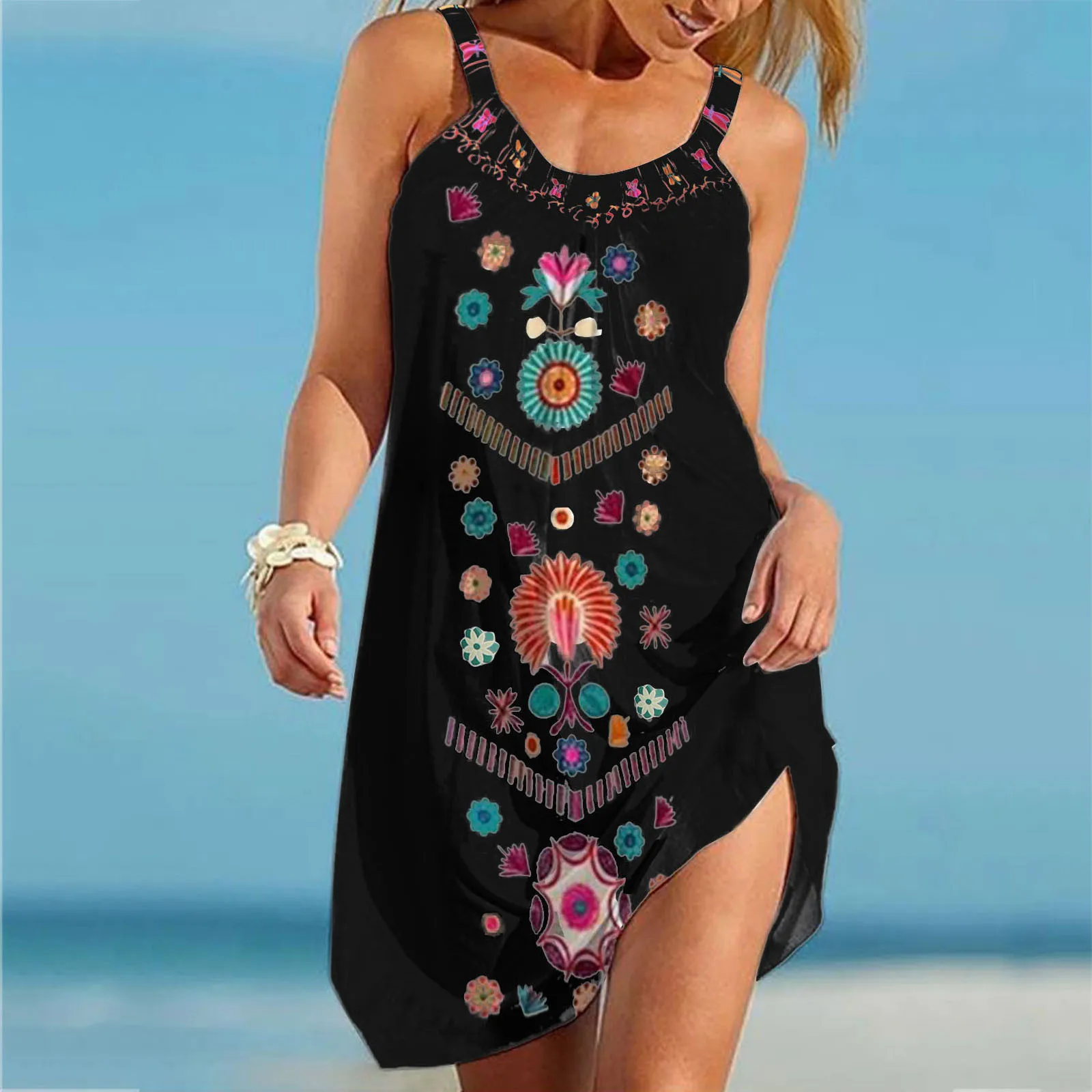 Женские летние платья 2021, сексуальное Белое пляжное платье с круглым вырезом и цветочным принтом, мини-платье на бретелях-спагетти без рукавов, сарафан с запахом, Халат