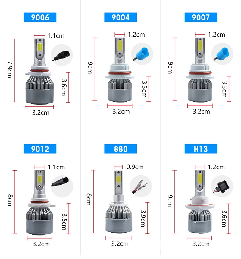 Информация о товаре:Название товара: светодиодная фара C6Напряжение: 12 В постоянного токаИсточник светильник светодиодныйМощность: 72 Вт/параЛюмен: 7600 лм/пара (3800 лм * 2)Цветовая температура: 6000 КСрок службы: >30000 чПрименение: Автомобильный светодиодный светильникКачество материала: алюминиевый сплавХарактеристика: встроенный вентилятор для нагреваТип разъема: H1/H3/H4/H7/H8/H9/H11/9004/9005/9006/9007Посылка:1 пара с 2 лампамиВажное примечание:Наши светодиодные фары подходят для большинство автомобилей по всему миру. Некоторые марки и модели автомобилей, обновленсветодиодный ные фары, необходимо приобрести Дополнительный декодер CANBUS (Mini; Volvo; Jeep Compass; New LaVida; BMW X1; Mercedes-Benz B; Chrysler Cruiser; И т. Д.), Пожалуйста, поймите, нужен ли вашему автомобилю декодер CANBUS, а затем разместите заказ (кроме CANBUS светодиодный ными лампами).