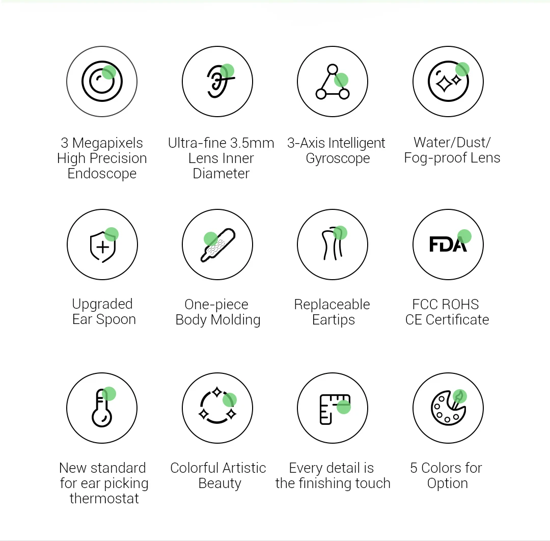 Подключение: беспроводные WIFI пиксели: 3 мегапикселя Диаметр линзы: 10-50 мм Емкость аккумулятора: 185 мА · ч ток: 5 В постоянного тока Время зарядки: 50 мин, скорость передачи изображения: 30 кадров в секундуОсобенностиБыстрое визуальное подключение Wi-Fi. Для открытия ушей не требуется подключение. Используйте оптические линзы и высокую производительность 300 Вт пикселей. Cmos-датчик имеет четкое изображение, 20x усиливающий ушной канал и угол обзора 100 °. 13 комбинированных линз и 6 светодиодный ламп. Водонепроницаемый объектив IP67. Можно стирать в воде. Адаптируется к сухим ушам, масляным ушам и другим сложным условиям. 3 оси smart направленного гироскоп быстрого позиционирования, экран, нет ошибок и встряхните. Высококлассная технология кодирования видео OV chip, синхронная захватывающая синхронизация рук и глаз! Сильный сигнал WiFi, проникающая мощность, Избегайте задержки. Более безопасная защита. Пряжка для ушей, защита от перегрева, автоматическое отключение времени, блокировка детей и защита от мороза. Умный постоянный контроль температуры. Предотвращение низкой температуры и горения ушей. Otoscope: 25 °C неиндуктивная температура. Корпус наушника: 32 °C температура ладони. Длительная выносливость. Встроенный аккумулятор большой емкости 185 мАч. Выбор раз в неделю в течение 10 минут, можно использовать около 30 дней.Посылка в комплекте1x ушные вкладыши 2x аксессуары для ушейУведомлениеСредний отит и другие болезни уши могут безопасно собирать. Дети старше 3 лет должны сопровождать взрослых.