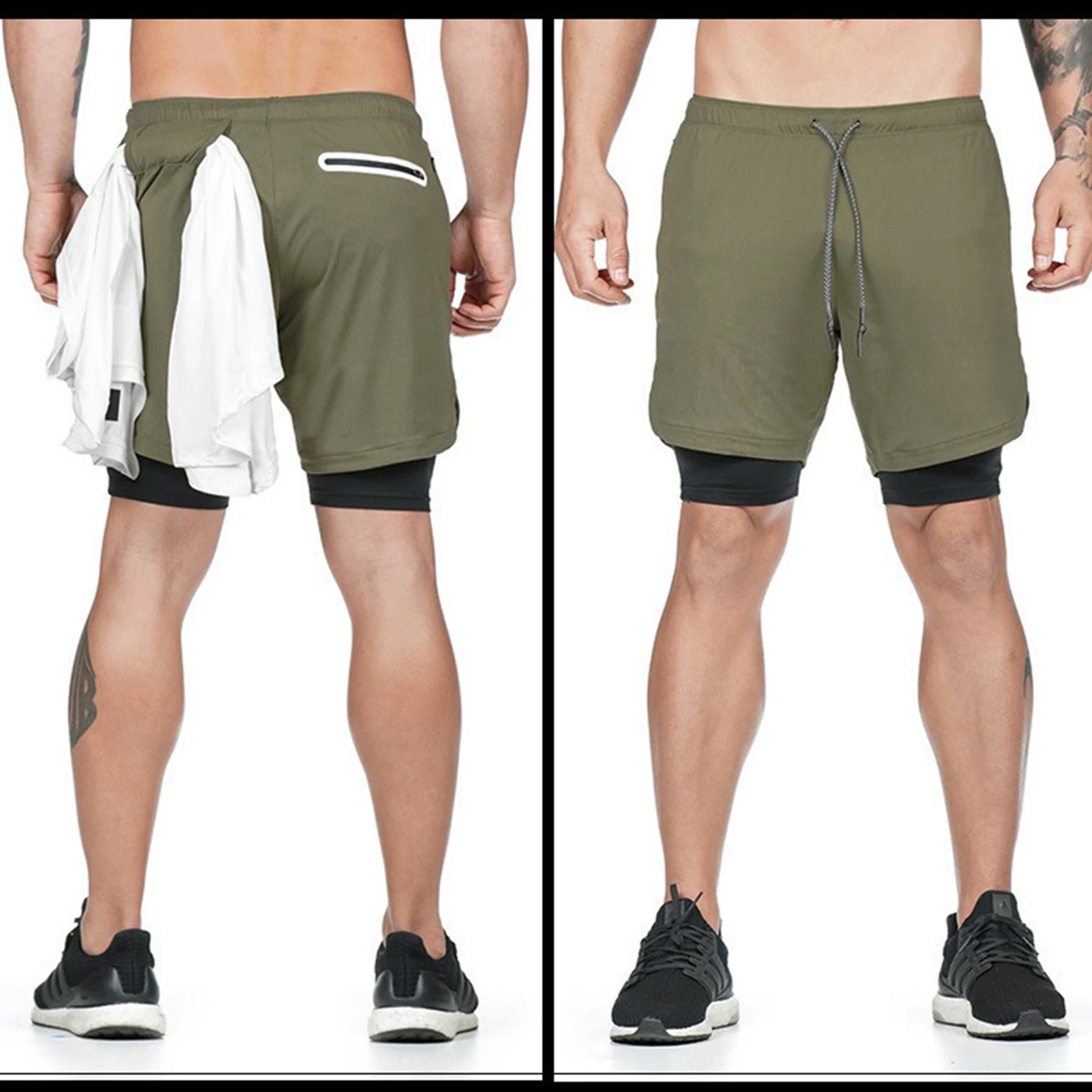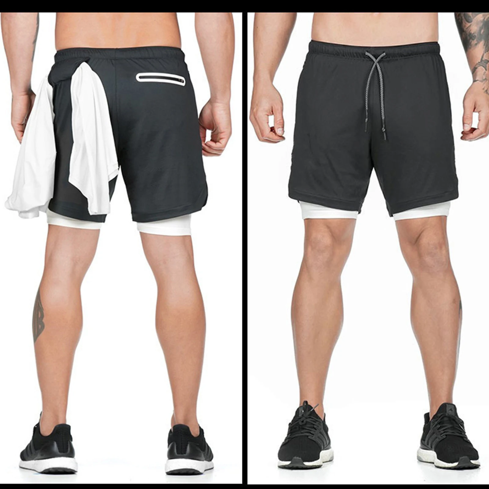 Мужские беговые шорты 2 в 1, двухуровневые быстросохнущие спортивные шорты для бега и тренировок, мужские спортивные шорты, 2021