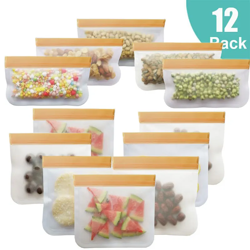 Силиконовый Пакет для пищевых продуктов, 12 шт.компл., матовый пакет для хранения пищевых продуктов из ПЭВА, многоразовый пакет для хранения замороженных продуктов на молнии с герметичным верхом, мешок для хранения фруктов