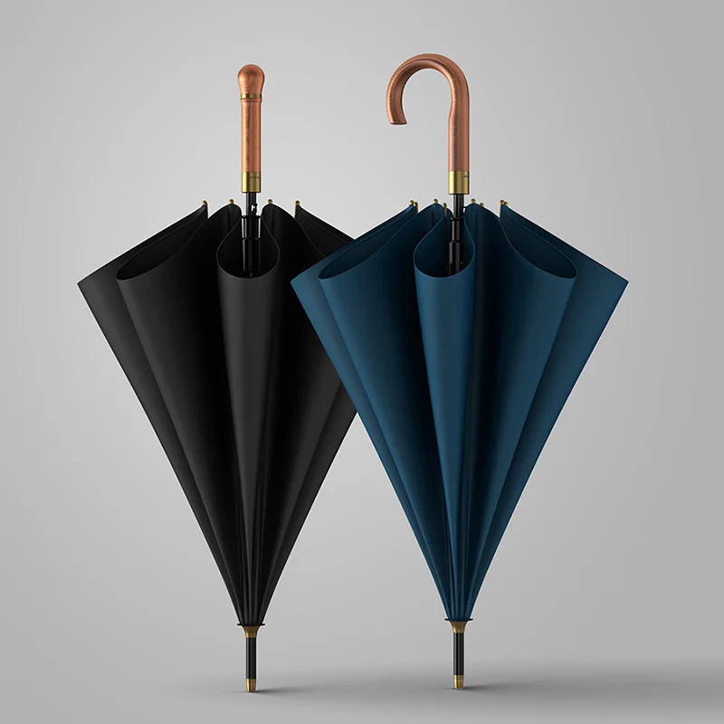 Новый длинный зонт с деревянной ручкой. Два стиля ручки дают вам больше выбора. Супер ветрозащитный зонтик важен, когда сильный ветер. Палка имеет толщину 14 мм стали и увеличивает диаметр до 114 см, может легко вместить 2-3 человека.