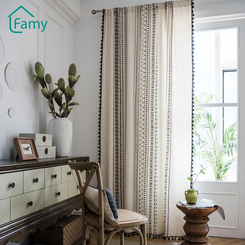 Занавески с принтом для спальни, гостиной, занавески с полузатемнением, занавески в американском богемном стиле с кисточками, занавески из хлопка и льна