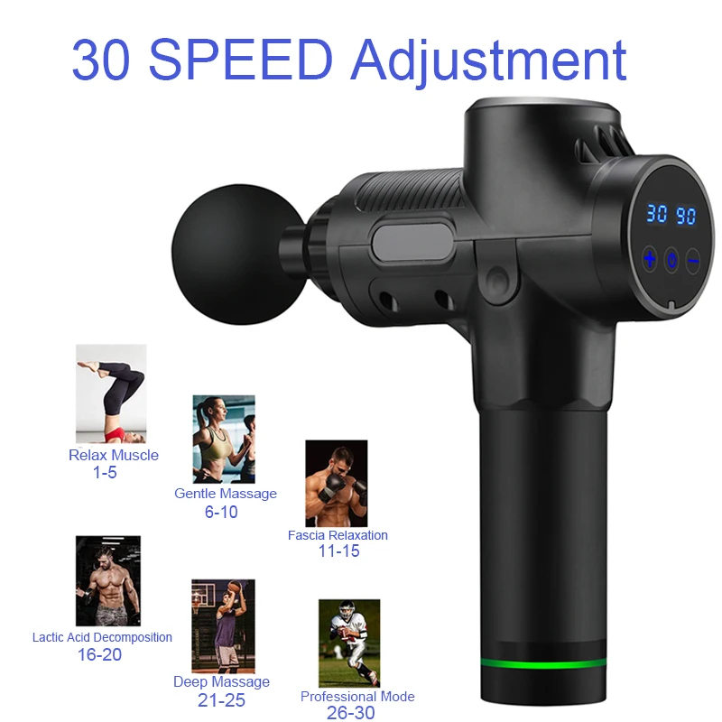Массажный пистолет для мышц, спортивный терапевтический массажер с 6 насадками, 30 скоростей, для снятия боли в теле, шее, упражнений, релаксации