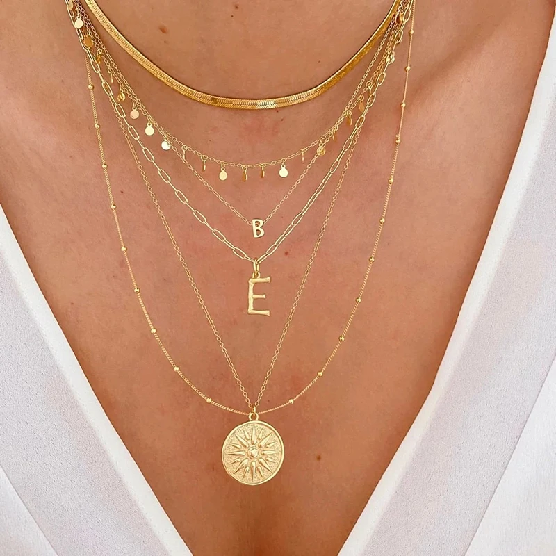 Модное ожерелье Звезда бар диск кулон четыре слоя ожерелье позолоче...