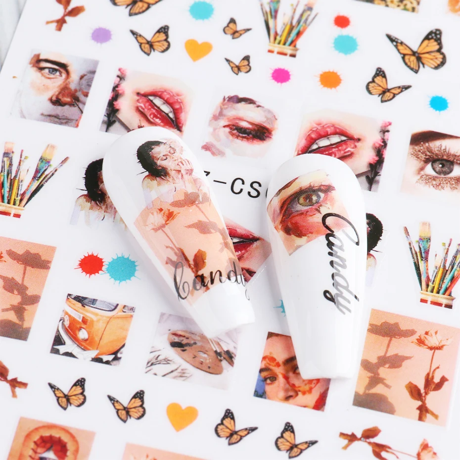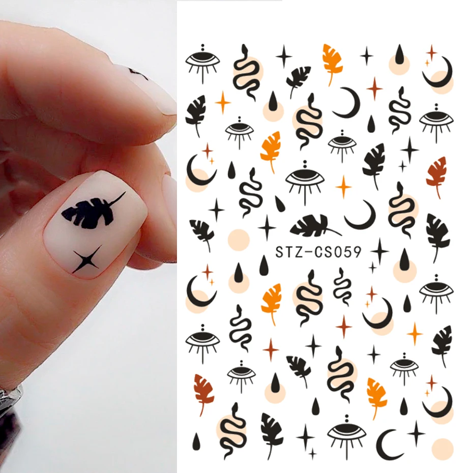 Украшение в виде змей наклейки для ногтей слова слизи абстрактное лицо геометрические листья фигурки для ногтей переводное тату оборудование для ногтей SASTZCS059