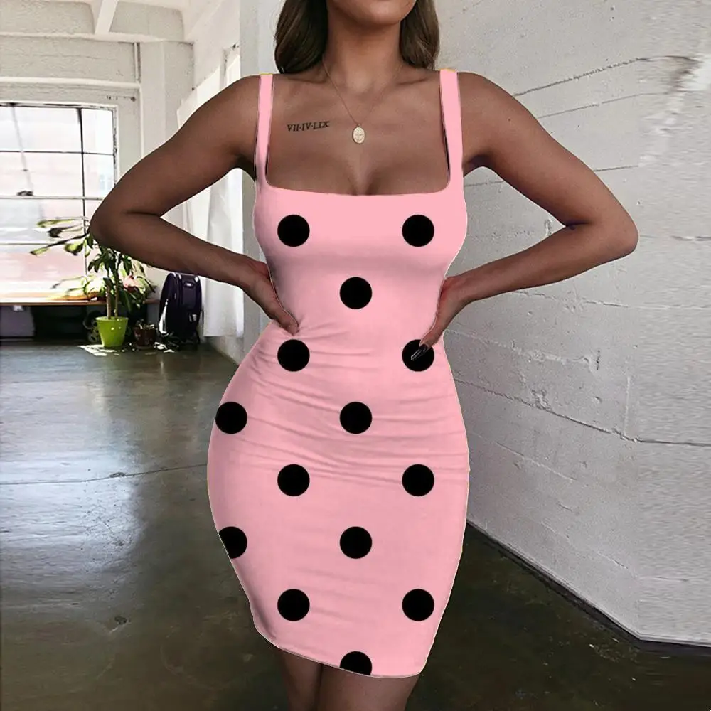 Женское платье в горошек KYKU, Красное Облегающее Платье без рукаво...