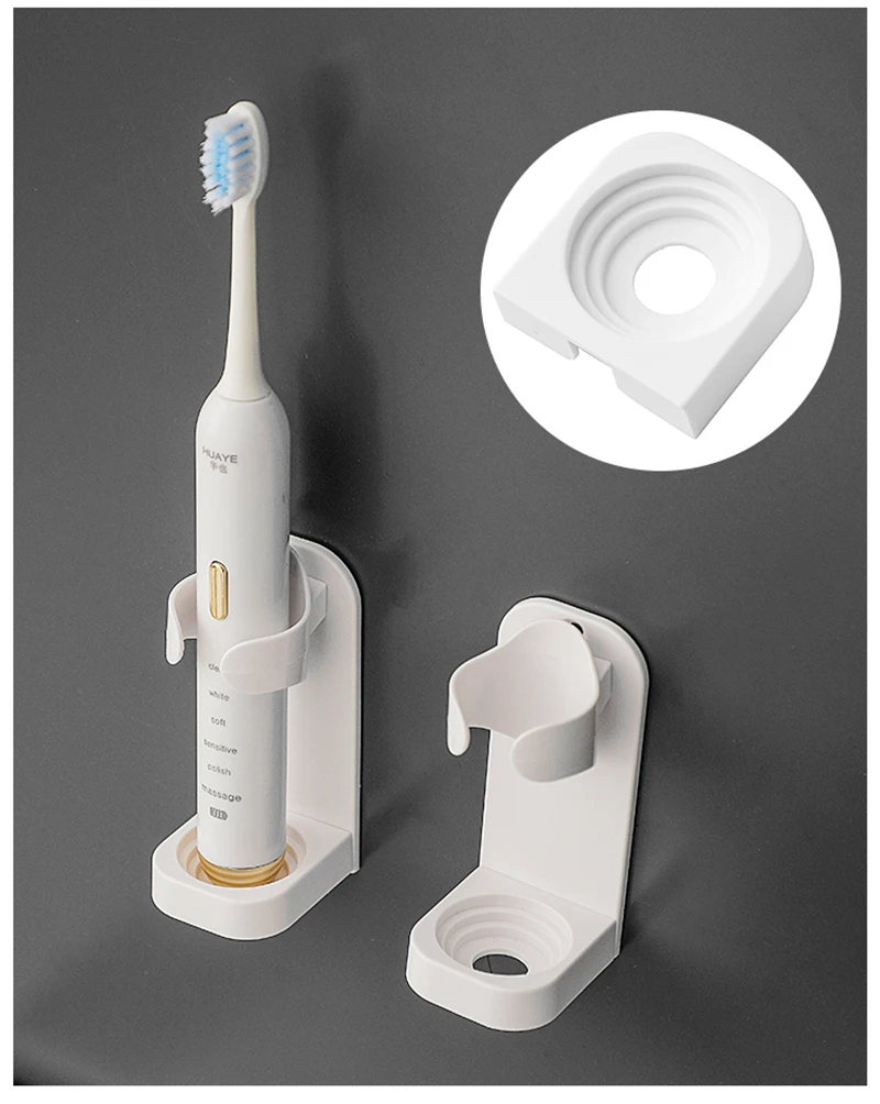 Кронштейн, предназначенный для электрических зубных щеток, удобен в хранении, крепится к стене, не оставляет пятен воды, легко моется