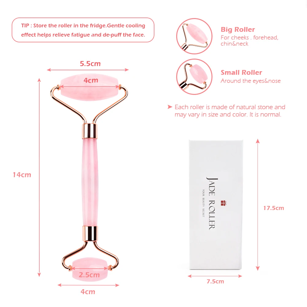 √ Двухсторонний розовый КВАРЦЕВЫЙ валик-Большой валик идеально подходит для шеи, подбородка, щек и лба, в то время как меньший идеально подходит для вокруг глаз, носа и губ. Ролик способствует циркуляции крови, что может уменьшить отечность и морщины