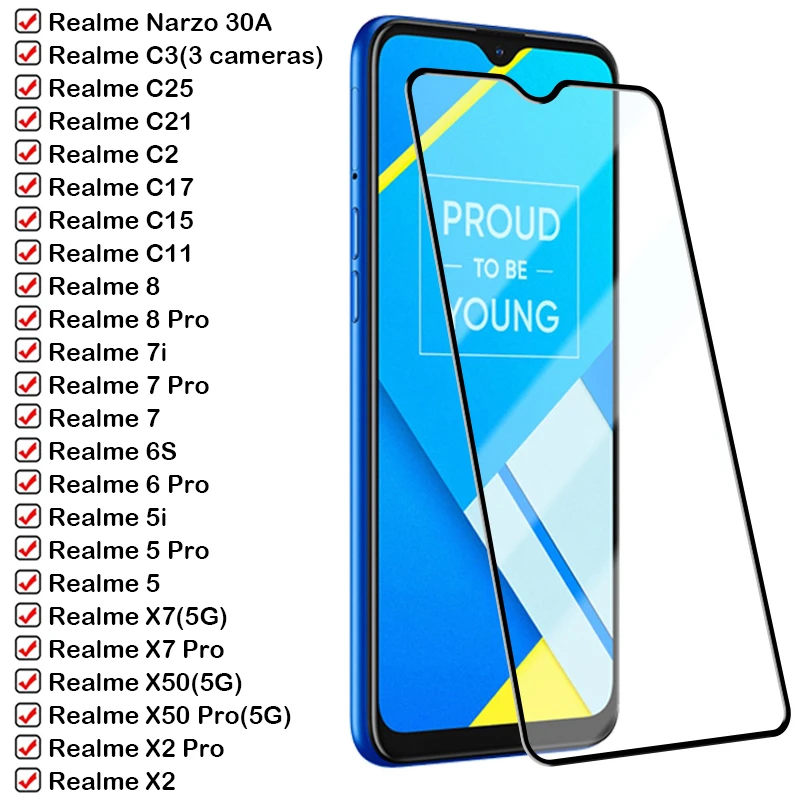 Защитное стекло для экрана OPPO Realme 8 7 6 Pro Narzo 30A X50 X7 C3, пленка из закаленного стекла Realme C21 C11 C17 C15 C25 X2 7i 5 6S