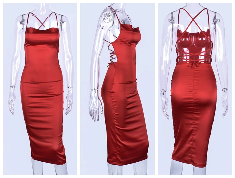 Женское атласное платье-миди, элегантное однотонное соблазнительное облегающее платье с лямкой через шею и открытой спиной, Клубная одежда, лето 2021