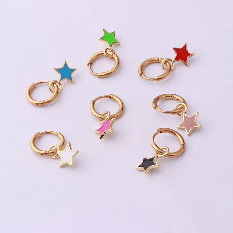1 шт. модные радужные серьги-кольца в форме сердца и звезды для женщин серьги-кафффы для зависания уха Висячие Серьги Для Пирсинга Хряща ювелирные изделия оптовая продажа