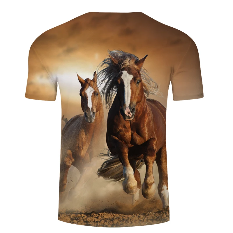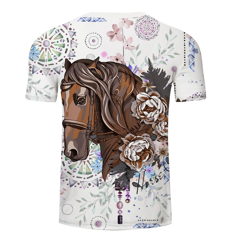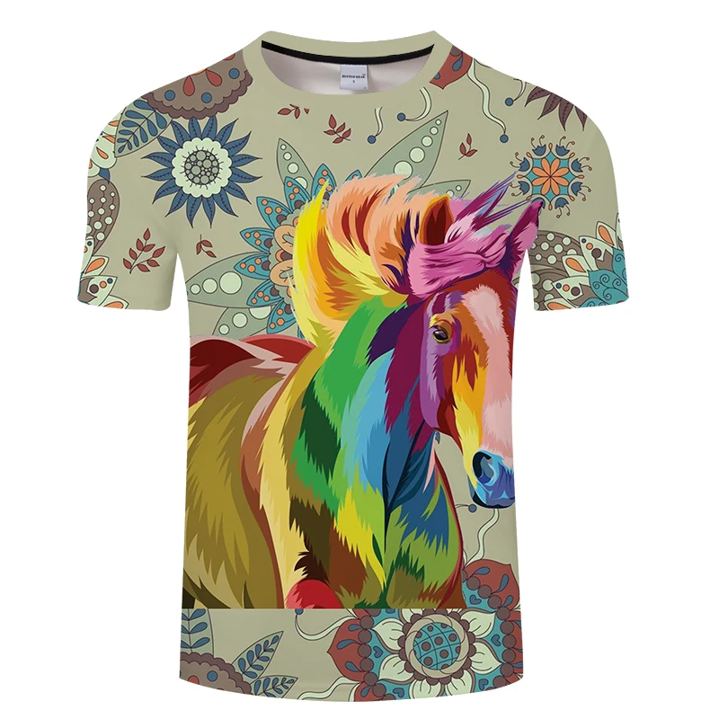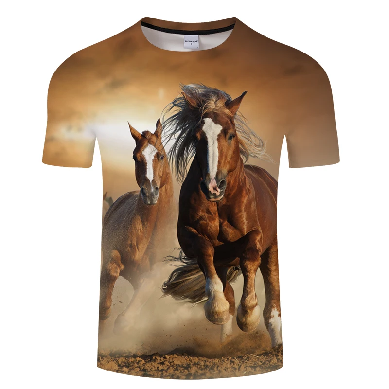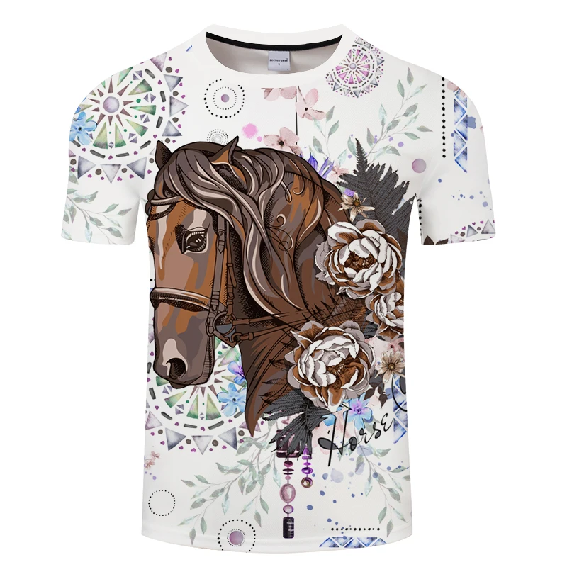Новинка лета 2021, футболка с 3d принтом лошади, модный топ с коротким рукавом, американский размер