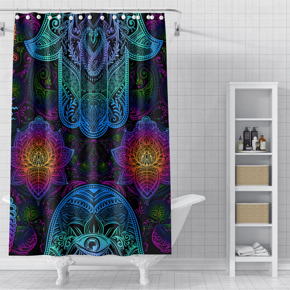 Занавески для душа в богемном стиле, с цветочным узором Галактики, водонепроницаемые, влагостойкие, декоративные занавески для ванной с крючками