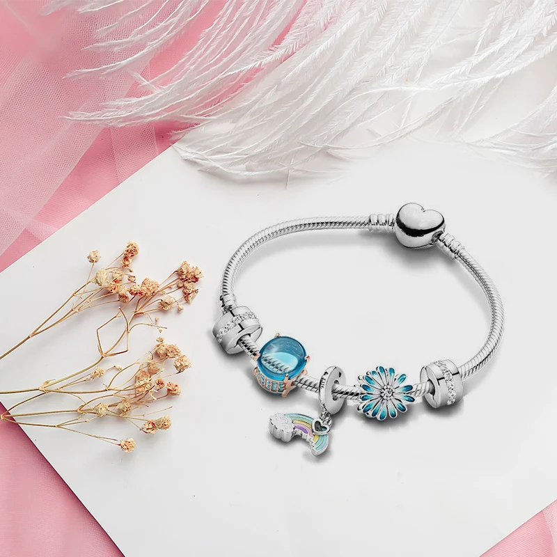 Браслет на удачу из серебра 925 пробы, милая Радужная Подвеска для браслета Pandora, Шарм-браслет сделай сам, подарок для пары, женский браслет, ювелирные изделия