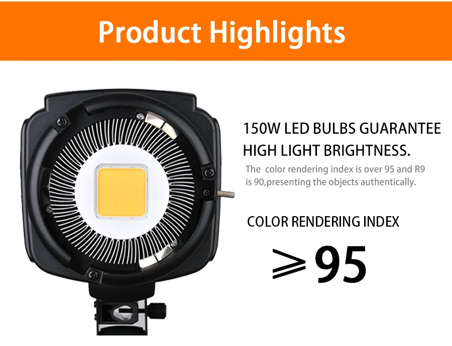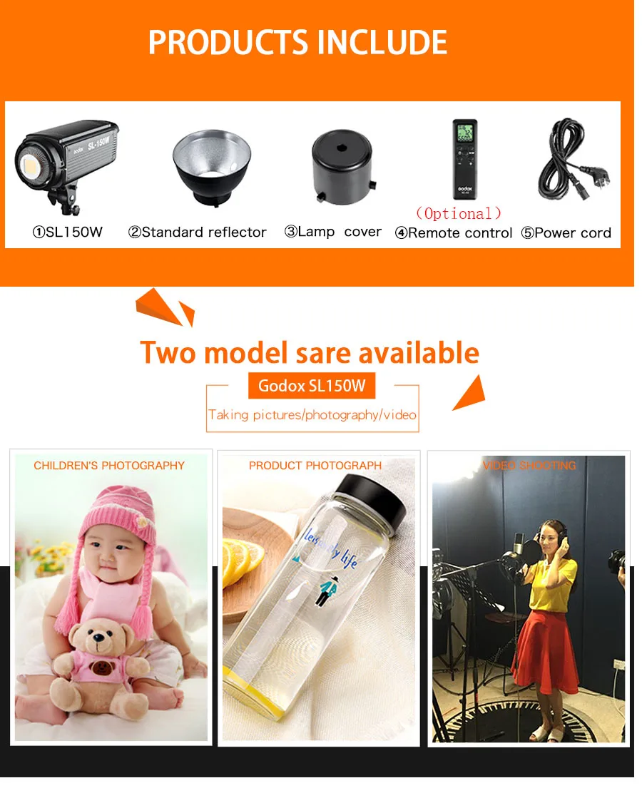 Godox SL150 светодиодный светильник для видеосъемкиСветодиодный светильник Godox SL150 отлично подходит для съемки продукции, фоторепортажа и видеосъемки и т. д. он создает стабильный светодиодный светильник и высокоэффективное освещение для фотосъемки. Длительный срок службы более 50000 часов, высокий CRI >93. Низкое потребление, 80% энергосбережение.Особенности-Светодиодный светильник 150 Вт гарантирует высокую яркость, чтобы заменить традиционный светильник 600 Вт.-Индекс цветопередачи составляет более 90, а R9-более 50, достоверно представляя объекты-Цветовая температура: 5600K.-Беспроводная регулировка яркости светильник с помощью пульта ДУ.-Беспроводная система группирования 433 МГц (6 групп и 16 каналов)-ЖК-панель большого размера. Настройки автоматически сохранены.-С функцией индикации температуры (по Цельсию и по Фаренгейту)-Со специальной защитной крышкой для защиты светодиодный шарик.-С радиатором из красной меди и встроенным вентилятором для предотвращения перегрева.Спецификация-Модель: SL150W 5500K-Люкс: >4100 @ 1 метр.-Люмен: > 12000 лм.-CRI: >93-Группа: 6 групп (A, B, C, D, E, F)-Мощность: макс. 160 Вт-Цветовая температура: 5600K ± 300K-100% освещенность (люкс): 9000 (1 м)-100% Световой поток: 26000-Индекс цветопередачи (Ra): 90-92-R9: >80-Канал: 16-Светильник диапазон яркости: 10% ~ 100%-Рабочая температура: -10 ~ 50 °C-Безопасная температура: до 70 °C-Размер: 24,6x12x12,6 см (не включает в себя абажур лампы)-Сеть Вес: 2,5 кгПульт дистанционного управления-Модель: RC-A5-Беспроводная частота: 433 МГц-Расстояние (пустота): 20 м-Канал: 16-Группа: 6 групп (A, B, C, D, E, F)-Время работы в режиме ожидания: более одного года-Рабочая температура: -10 ~ 50 °C-Размеры: 120 мм * 38 мм * 15 мм-Вес нетто: 30 г