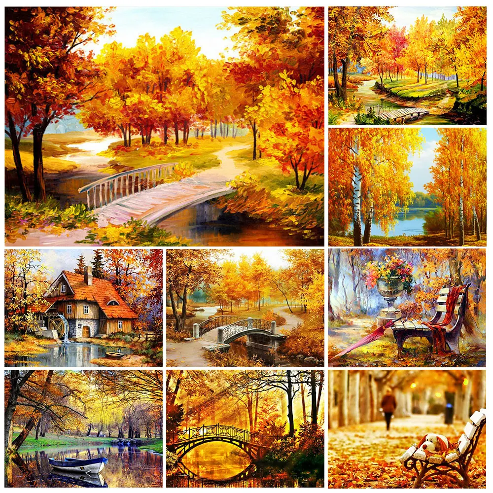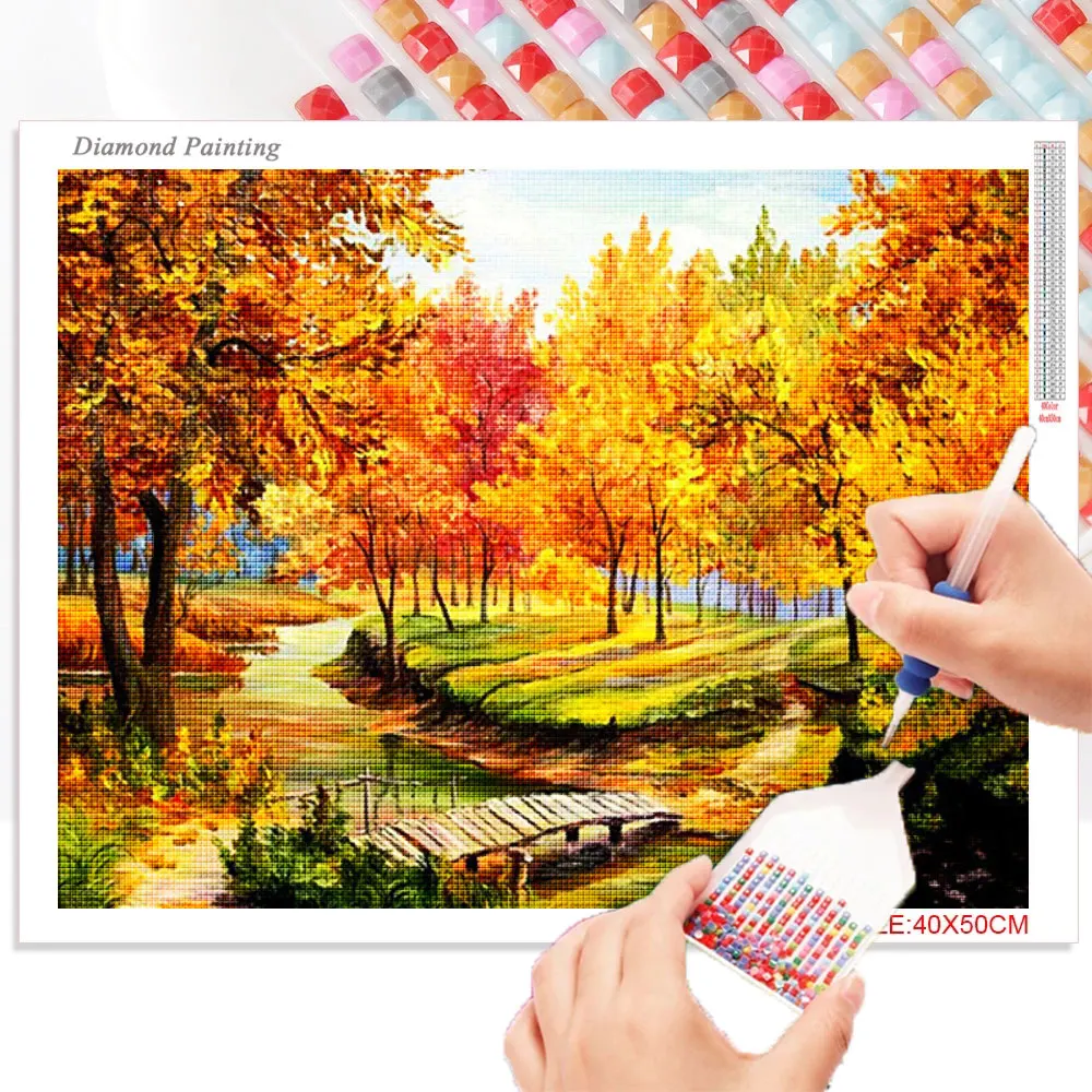 【Площадь сверла】:Полностью квадратная/круглая Алмазная мозаика на осеньПейзаж