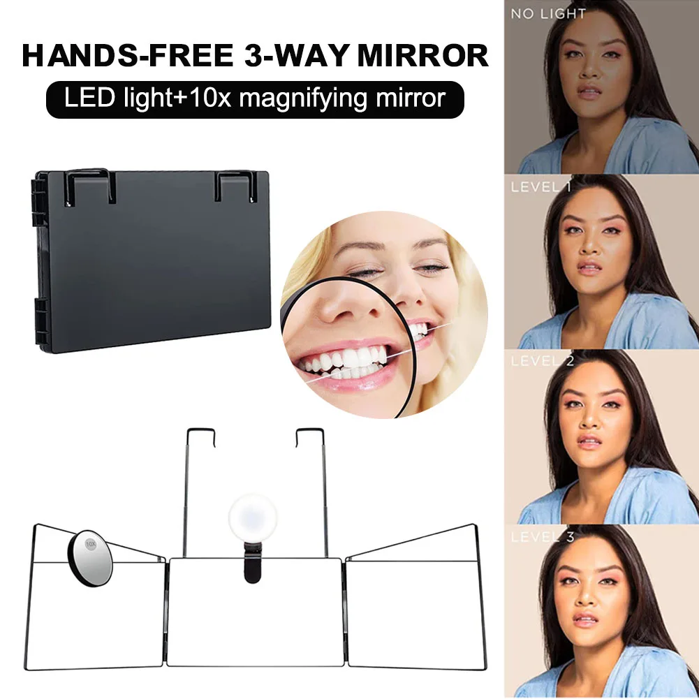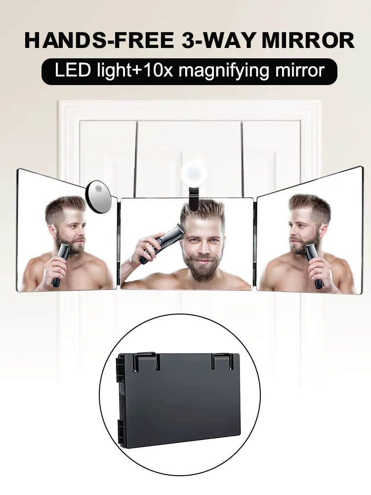 Перезаряжаемое трехстороннее зеркало для самостоятельной стрижки волос на 360 градусов тройное зеркало со светодиодный светильник кой для стрижки волос в домашних условиях для мужчин