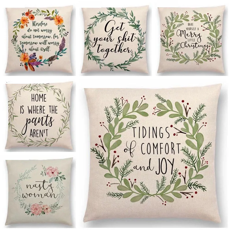 Новинка декоративные буквы с цветами и листьями чехол для подушки теплые слова цветочный узор любовь наволочки Прямая поставка чехол