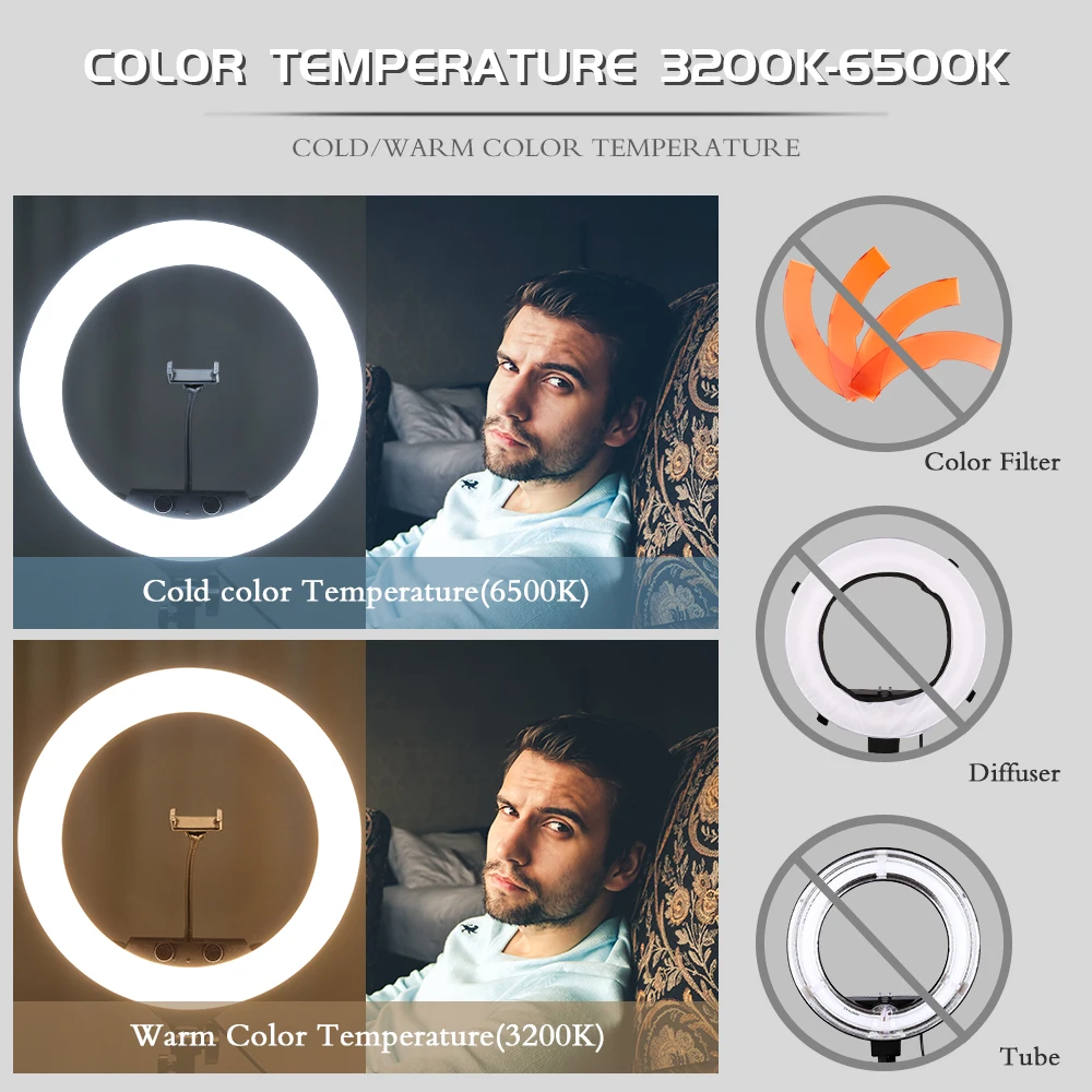 18 дюймовый кольцевой светильник: с регулируемой яркостью и регулируемой яркостью, вы можете настроить светильник на 10%-100%. Кольцевой светильник для селфи делает вас более привлекательным и очаровательным.Специальный светодиодный, легкий и портативный дизайн. Постоянный ток, низкое энергопотребление.Отсутствие ультрафиолетового и инфракрасного излучения светильник излучения, низкая теплоотдача, безопасность и защиту окружающей среды.Многофункциональный тип поддержки: подходит для кольцевой светильник, микрофон, смартфон и камераВращение на 360 °: кольцевой светильник может вращаться на 360 градусов, светильник светится в каждом углу.Четыре штекера питания ed: штепсельная вилка европейского стандарта, штепсельная вилка стандарта Великобритании, штепсельная вилка стандарта США, штепсельная вилка стандарта Австралии, кольцевой светильник может подойти для всех стран.Шаровая Головка и зажим для телефона: подходит для большинства видов смартфонов и мини-подушек.Это действительно подходит для селфи, видео-записи на YouTube, фотосъемки с камерой, потоковой трансляции макияжа.Он может использоваться для наружной фотосъемки светильник, заполняющий светильник в помещении, портрет, мода, свадебное искусство, рекламная фотография, съемка видео и т. Д.