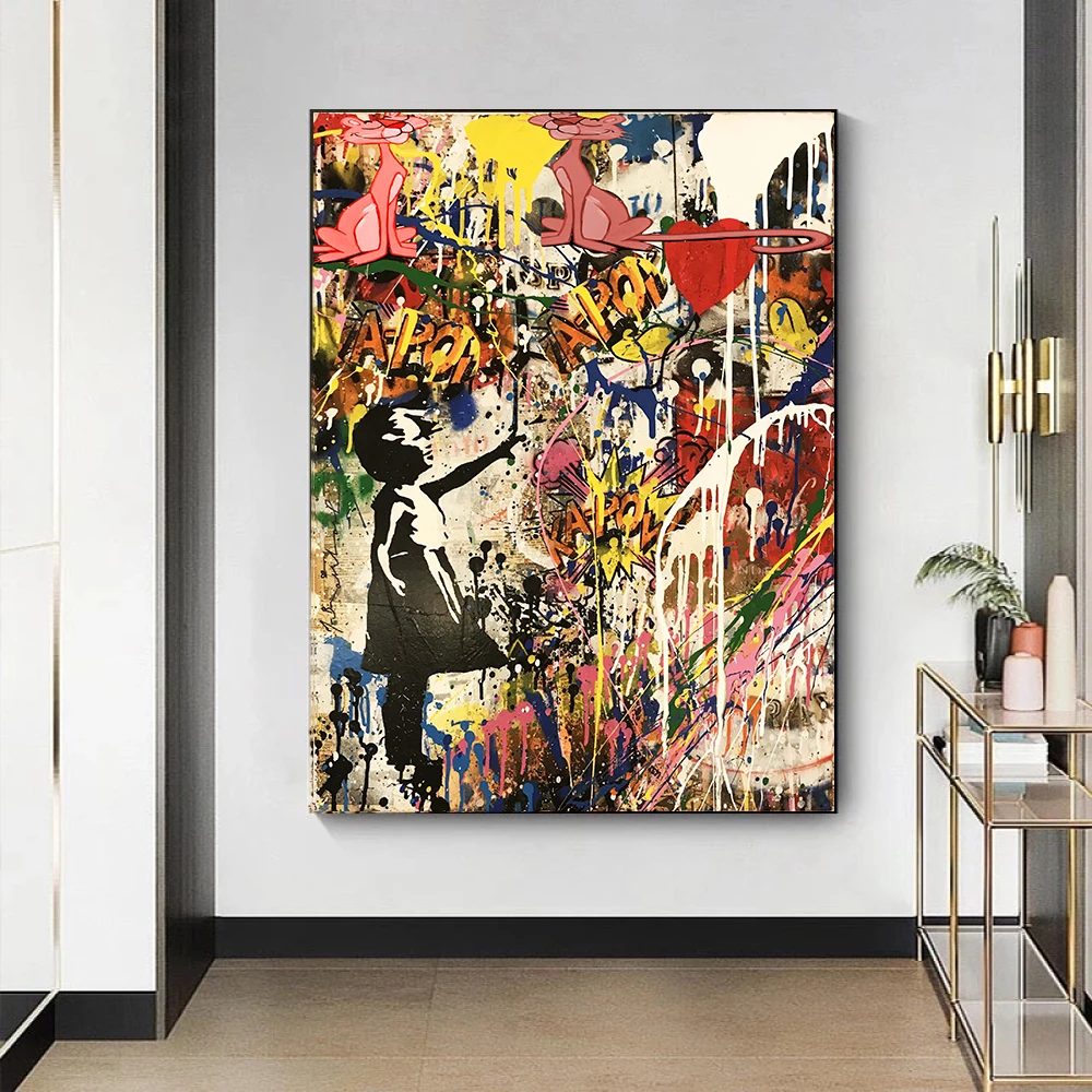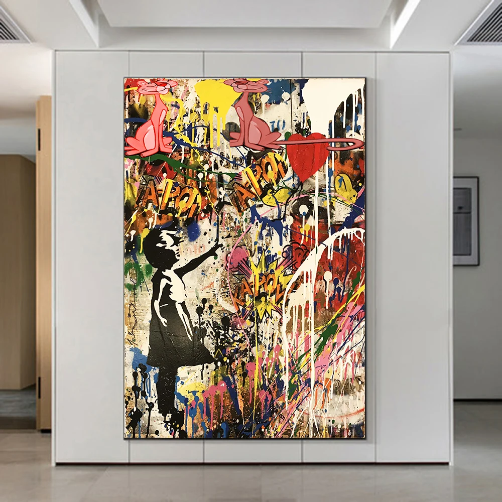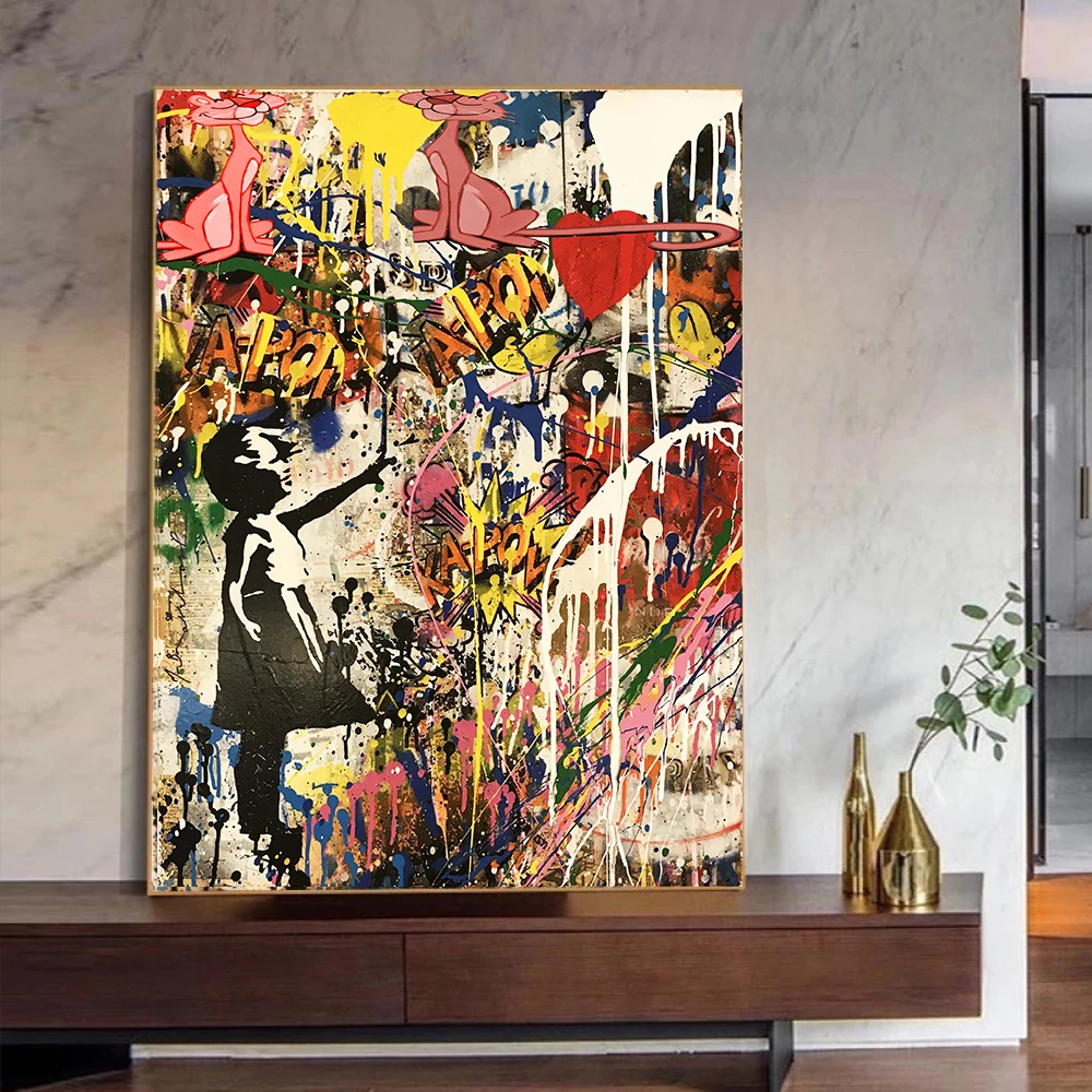 Граффити Бэнкси Художественная Картина на холсте Девушка с красным воздушным шаром плакаты и принты уличная Настенная картина Декор для гостиной