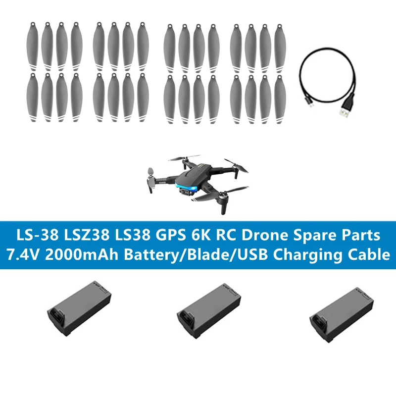 Название позиции: LS-38 LSZ38 LS38 GPS позиционирование 6K две камеры RC Дрон запасные части 7,4 V 2000mAh батарея/пропеллер/USB кабель для LS-38 LSZ38 LS38 квадрокоптера