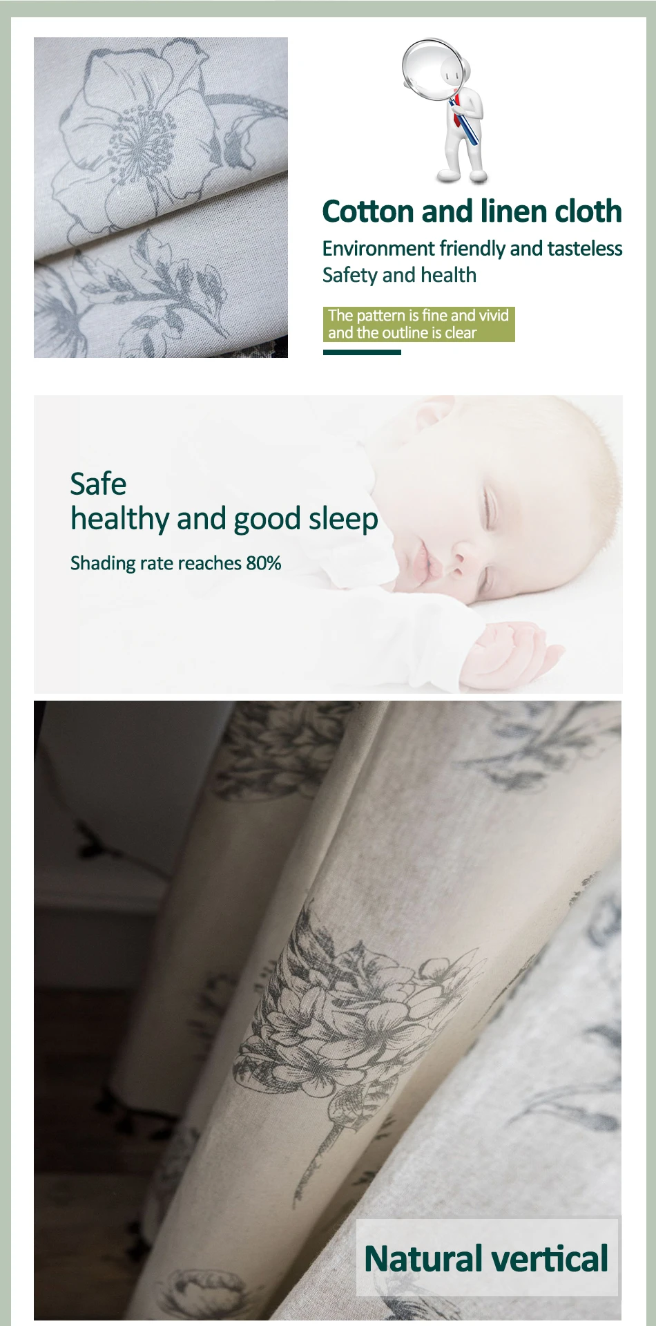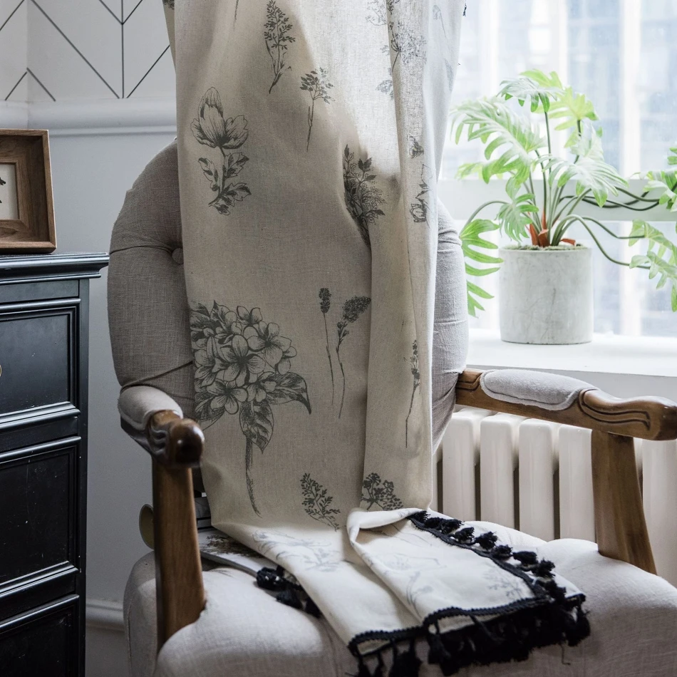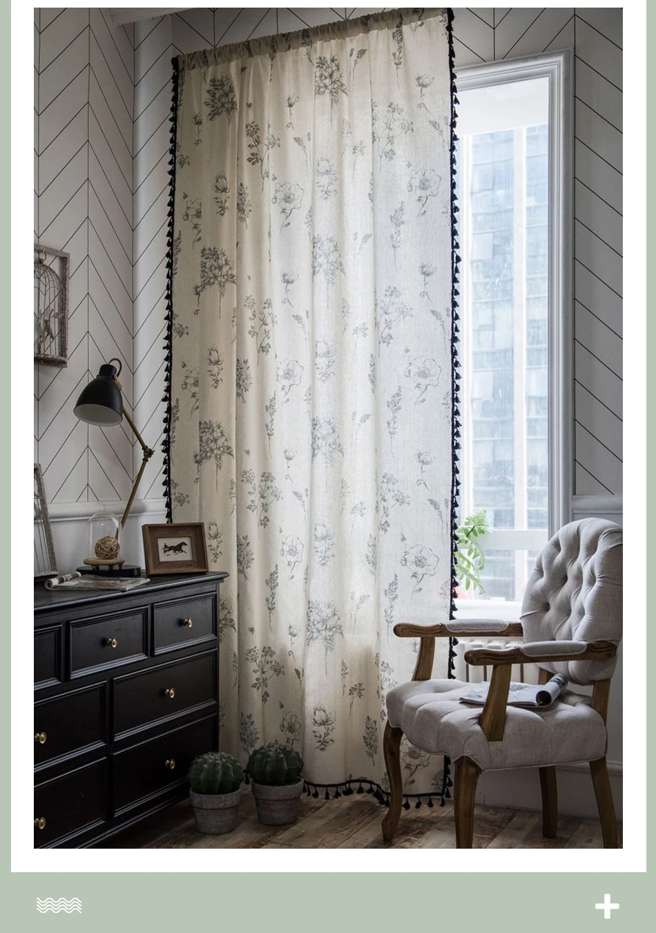 Полузатемняющие шторы с цветочным принтом, шторы для гостиной, спальни, американские шторы с кисточками из хлопка и льна, готовые шторы, домашний декор