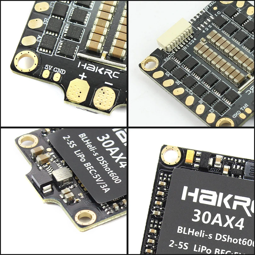 Высококачественная фурнитураМастер-чип EMF8BB21F16G, рабочая частота до 48 мгц. Высший импортный MOSFET, три в одном IC drive, импортный высококачественный керамический конденсатор. 3 унции толстой меди, 6 ламинатов, что значительно снижает температуру и повышает эффективность.Высокоинтегрированный, компактныйИнтеграция 4 высокопроизводительных внешних устройств на 30 А/40 А, встроенный на 2 а BEC, больше не беспокойтесь о большем количестве внешних устройств; Встроенный модуль усилителя, низкое напряжение также обладает мощной взрывной силой, пусть ваш полет будет быстрее. После столь высокой степени интегрированности громкость равна размеру управления полетом аппарата, и установка и маршрутизация станут очень лаконичными. Этот невероятный размер и размер, специально для гоночных машин.Родная поддержка BLHeli-SИспользуйте прошивку BLHeli-S, мощную производительность, богатые функции; И поддержка различных способов, предусмотренных электрическим параметром, или обновление прошивки (например, передача питания через сигнальную линию дроссельной заслонки, используйте другую макетную плату или используйте прошивку cleanflight или betaflight для управления полетом набор ESC или обновления).Аппаратный PWM, демпфированный светильникАппаратный двигатель привода ШИМ, небольшой шум, более плавный отклик дроссельной заслонки. Технология демпфирования светильник, функция рекуперативного торможения, благодаря чему снижение скорости двигателя более чувствительное и эффективное, более точное управление; Технология активного свободного круга, позволяющая батарее восстанавливать мощность, продлевает время полета;DShot150/300/600 готовПоддерживает не только режим обычного сигнала PWM, Oneshot125, Oneshot42 и Multshot, но и сверхвысокоскоростной сигнал дроссельной заслонки, более широкую поддержку новейших DShot150/300/600 цифровая подача газа, сильную защиту от помех, быстрое реагирование. Входная и выходная линия использует мягкую линию силикагеля, очень прочную и термостойкую, легко сваривается.По сравнению с Oneshot и Multishot, мы сообщаем, что DShot лучше, потому что:* Больше не требуется калибровки ESC (без дрейфа осциллятора)* Более точный сигнал ESC и более надежный против электрического nois* Быстрее, чем Oneshot* Безопаснее, каждый сигнал имеет циклическую проверку избыточностиПоддержка s D-shot.BB21 MCU, 48 МГц работает с прошивкой BLHELI_S J_H_xxПоддерживает 2-6S lipo входВход 4PWMВыход тока и напряжения2A 5v BECПостоянный ток: 30А/40АИмпульсный ток: 40 А/50 аПоддерживает oneshot / Multishot / Dshot PWMВсего 36x39 мм, монтажные отверстия 30x30 ммПоддерживает демпфированный свет