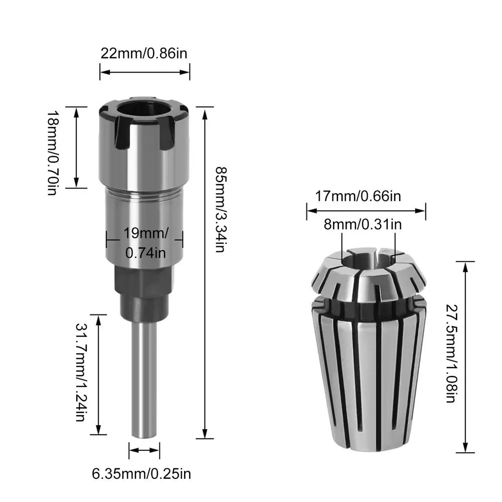 1/4 дюйма хвостовик маршрутизатор цанговый патрон 8 мм хвостовик фрезерный станок с ЧПУ удлинитель стержневой преобразователь адаптер маршрутизатор бит преобразования