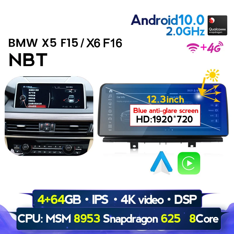 MEKEDE 12,3 дюймов 1920*720 синий антибликовый Carplay Android 10,0 автомобильный DVD GPS для BMW X5 F15 X6 F16 2014-2017 система NBT DSP 4G