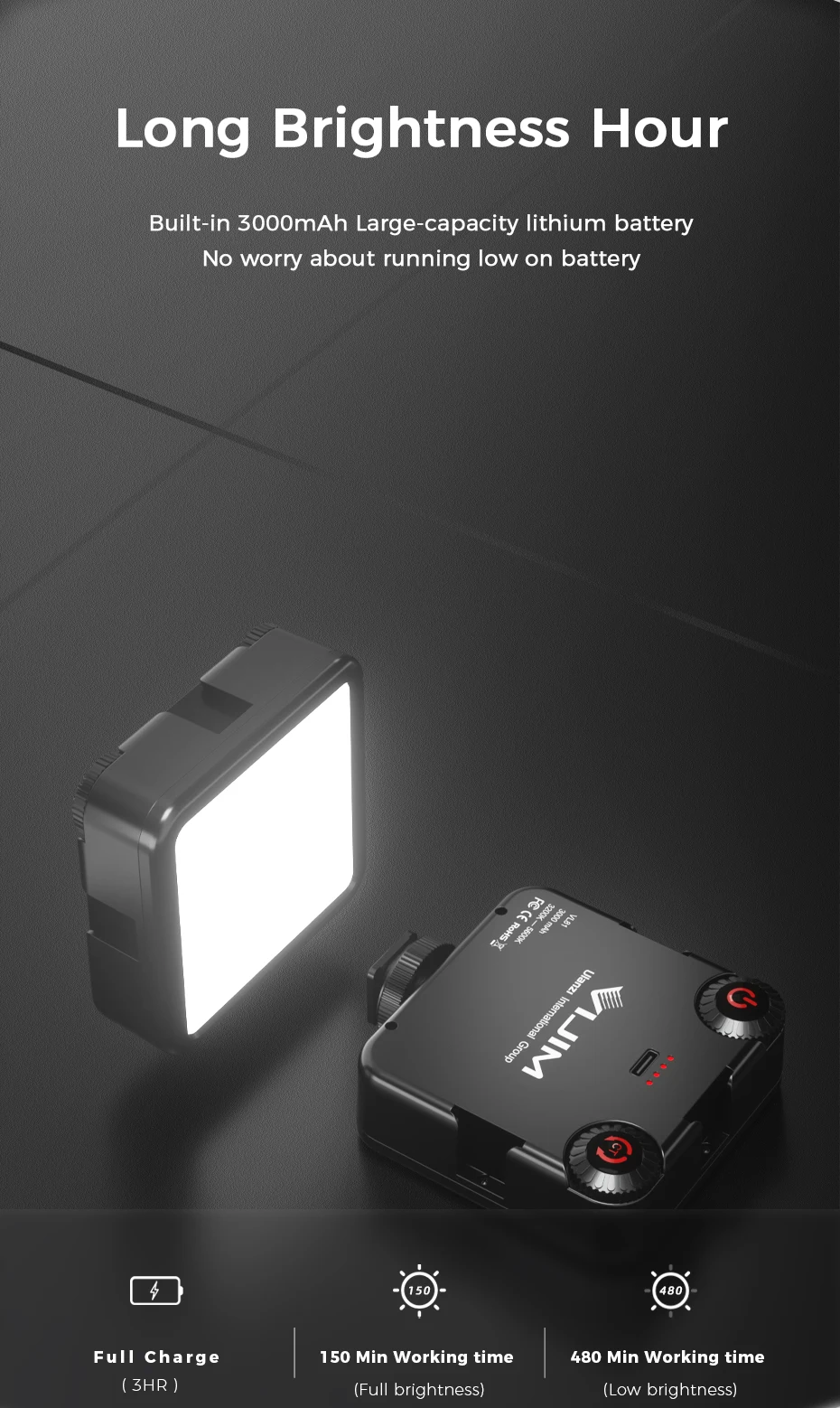 【 Встроенный литиевый аккумулятор 】 аккумулятор емкостью 3000 мА · ч, который заряжается, может использоваться непрерывно в течение 120-150 минут при максимальной мощности и с портом зарядки типа C на видеокамере, светильник. Самое главное, что светильник холодного башмака камеры также может использоваться во время зарядки. Разработан с легкой и прочной конструкцией, более портативный для вас, чтобы носить с собой, куда бы вы ни отправились и работали в любое время.