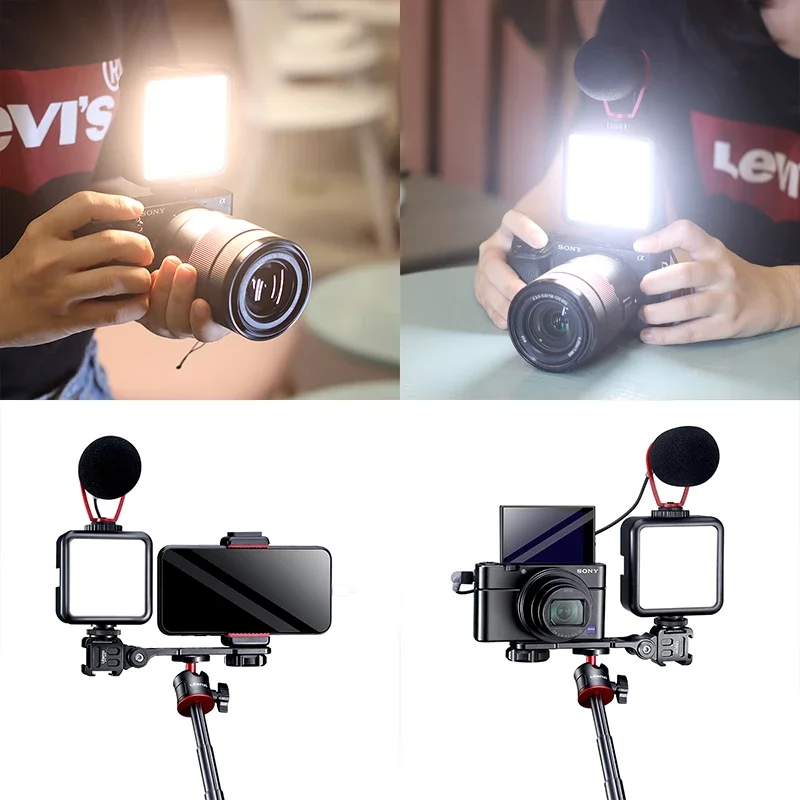 【 3 крепления для холодной обуви 】светодиодный светильник для видеосъемки разработан с 3 креплениями для холодной обуви (1 сверху, 2 сбоку) для подключения нескольких панелей под светильник Для того, чтобы укрепить светильник ing яркость и для того, чтобы получить лучшее светильник ing эффекты. Холодный башмак адаптер с 1/4 резьбовое отверстие делает светильник совместим с DSLR камер, видеокамер, штативы и светильник Подставки
