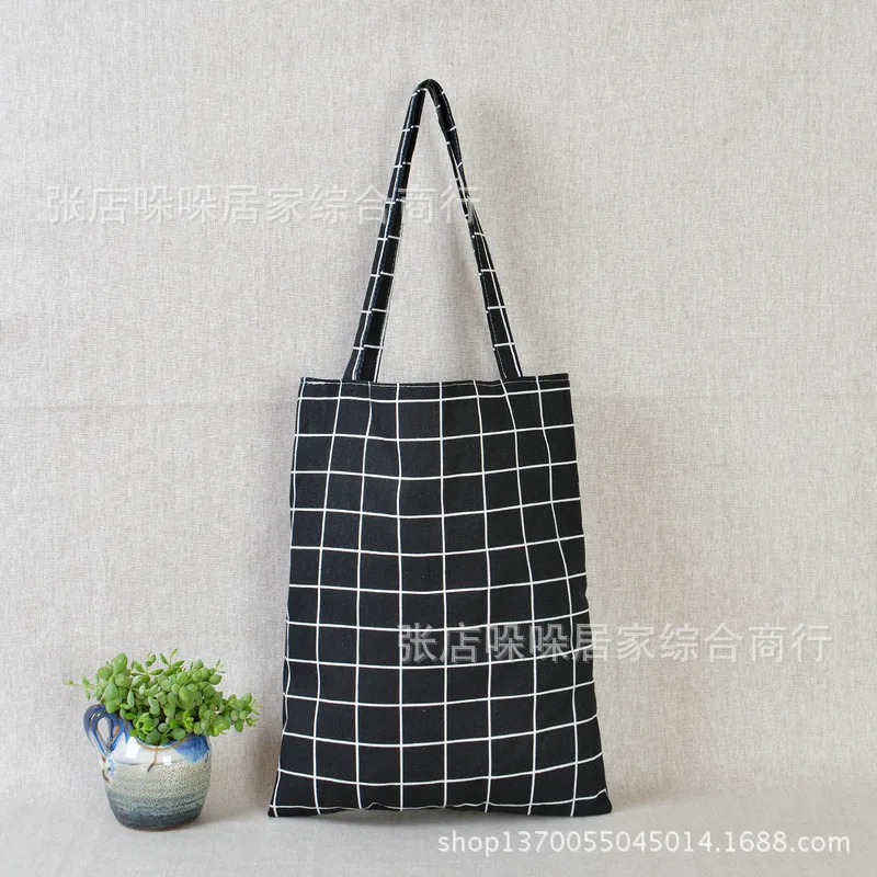 Женская сумка для покупок клетчатые хлопчатобумажные холщовые сумки...
