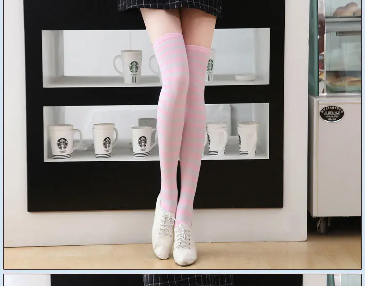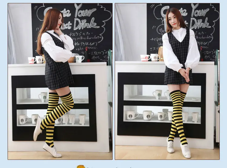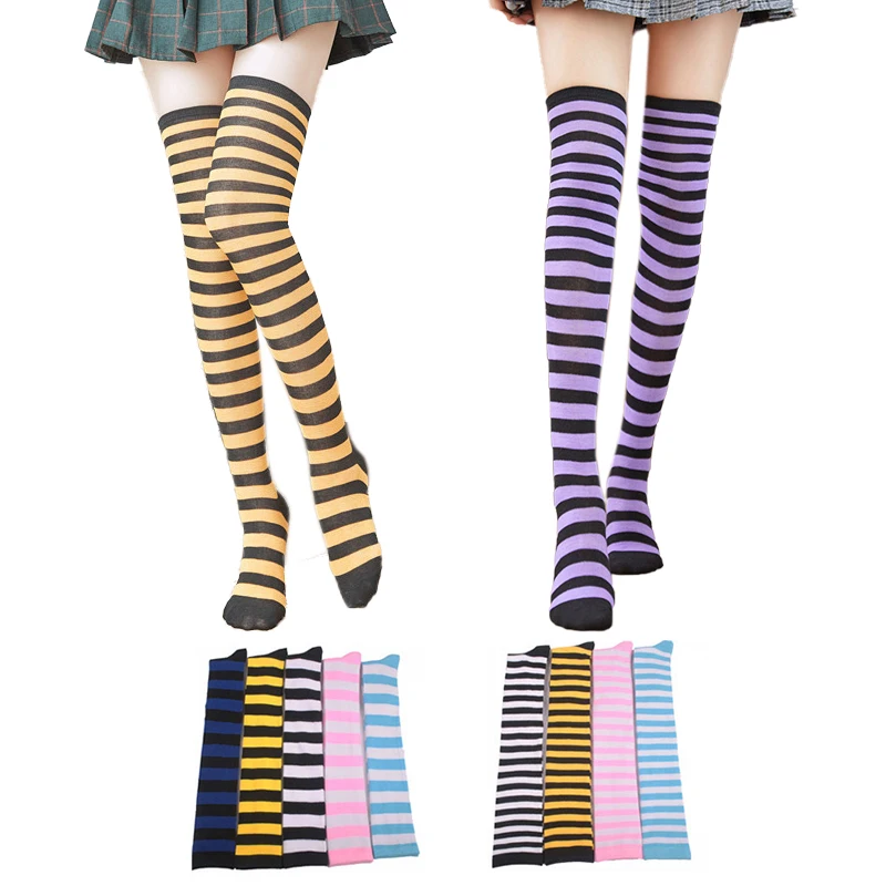 Носки женские хлопковые нескользящие выше колена, милые пикантные чулки в полоску, с принтом, в стиле хип-хоп, 27 цветов, для девушек и женщин