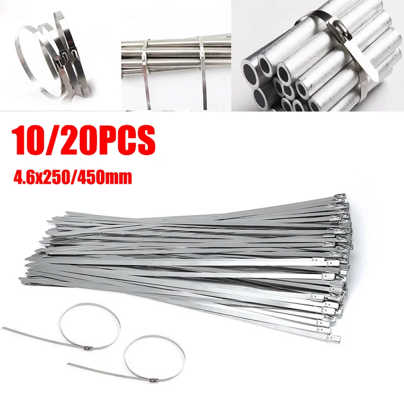 Особенности:1. Прочный: 304 нержавеющая сталь самоблокирующаяся застежка-молния для автомобильного применения, например, выхлопной тепловой пленкой. Может поддерживать температуру до 1000F. Термостойкость и устойчивость к коррозии. Идеально подходит для использования в помещении и на открытом воздухе.2. Высококачественный материал: наш галстук на молнии изготовлен из нержавеющей стали 304 с диапазоном рабочих температур от минус 112F до 1000F.3. Преимущества: они обладают большой прочностью, коррозионной стойкостью, огнестойкостью и длительным сроком службы. Которые могут быть использованы в различных средах, таких как влажные места, на открытом воздухе, места с высокой температурой и так далее.4. Простота в использовании: Эти фиксирующие стяжки разработаны с утолщенной пряжкой для укрепления галстука. Кроме того, пряжка содержит шарики из нержавеющей стали, чтобы сохранить стяжки от ослабления после зажима. Последнее, но не менее важное, вам полностью не нужны какие-либо инструменты для их установки, так же легко, как молния.5. Широкое применение: Эти застежки-молнии идеально подходят для кораблей, шахт, электричества, автомобильных деталей, проводов компьютера, ремонта дома и многого другого. Например, вы можете использовать их на цепочке в качестве галстука для крепления ткани к столбам, которые намного прочнее, чем пластиковые ремни. Примечание:1. Фактический цвет может быть s светильник, который сильно отличается от изображения из-за различных эффектов монитора и светильник. Возможны отклонения на 1-3 см вследствие измерений вручную. Спецификация:Тип: кабельная стяжка из нержавеющей сталиМатериал: нержавеющая стальРазмер: 4.6x25 0 мм/4.6x450ммКол-во: 10/20 штук