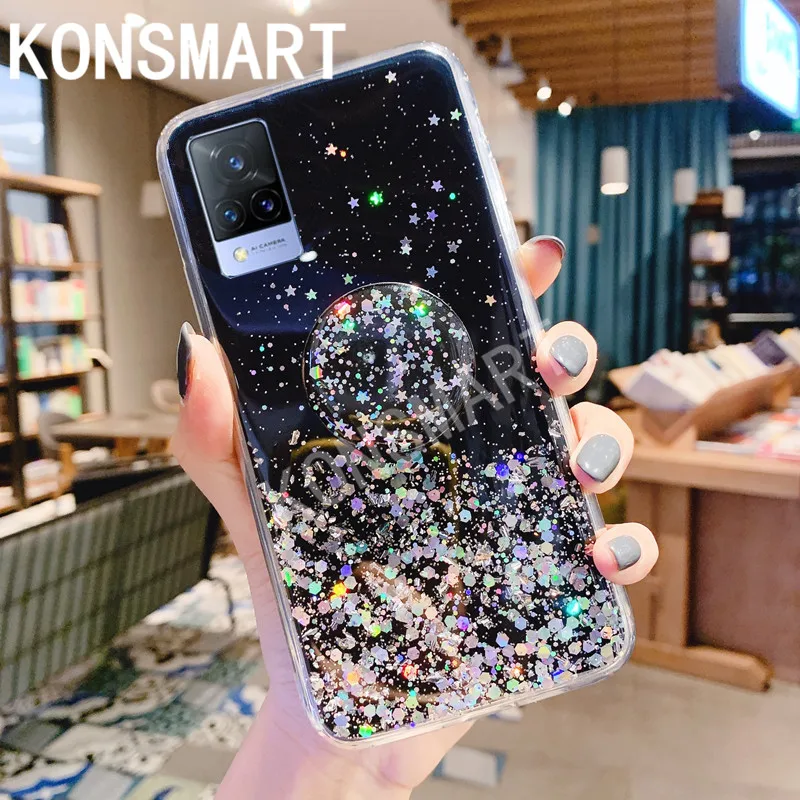 Чехол для телефона VIVO V21 5G чехлы со звездами V21e Роскошный прозрачный силиконовый мягкий чехол с подставкой V21