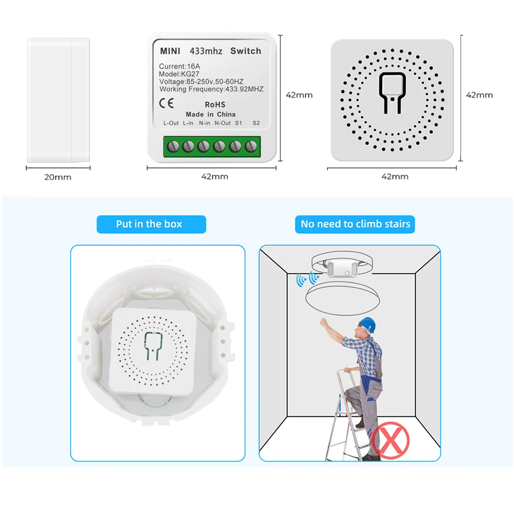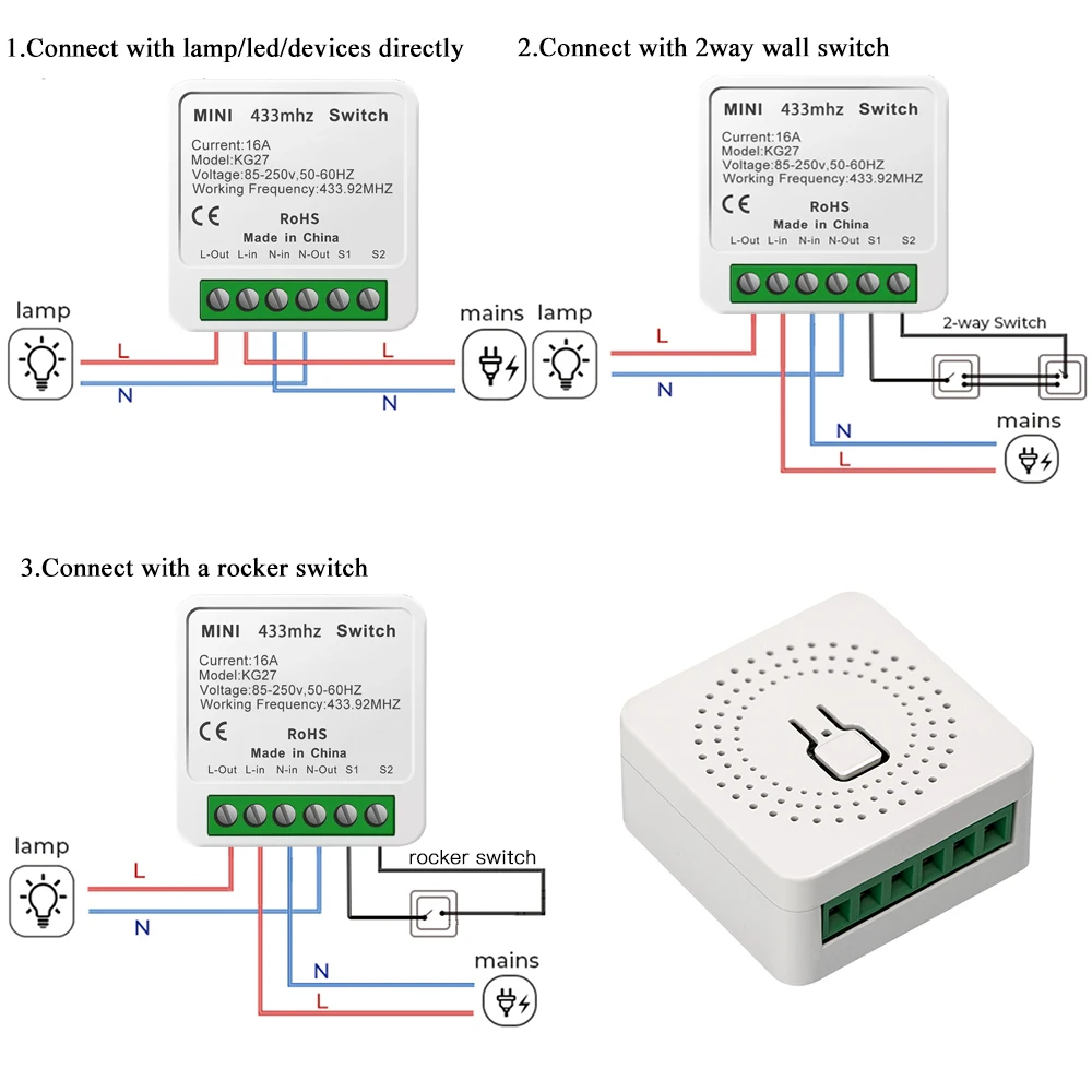 Гарантия1 Year RF 433MHz 16A mini light switch module