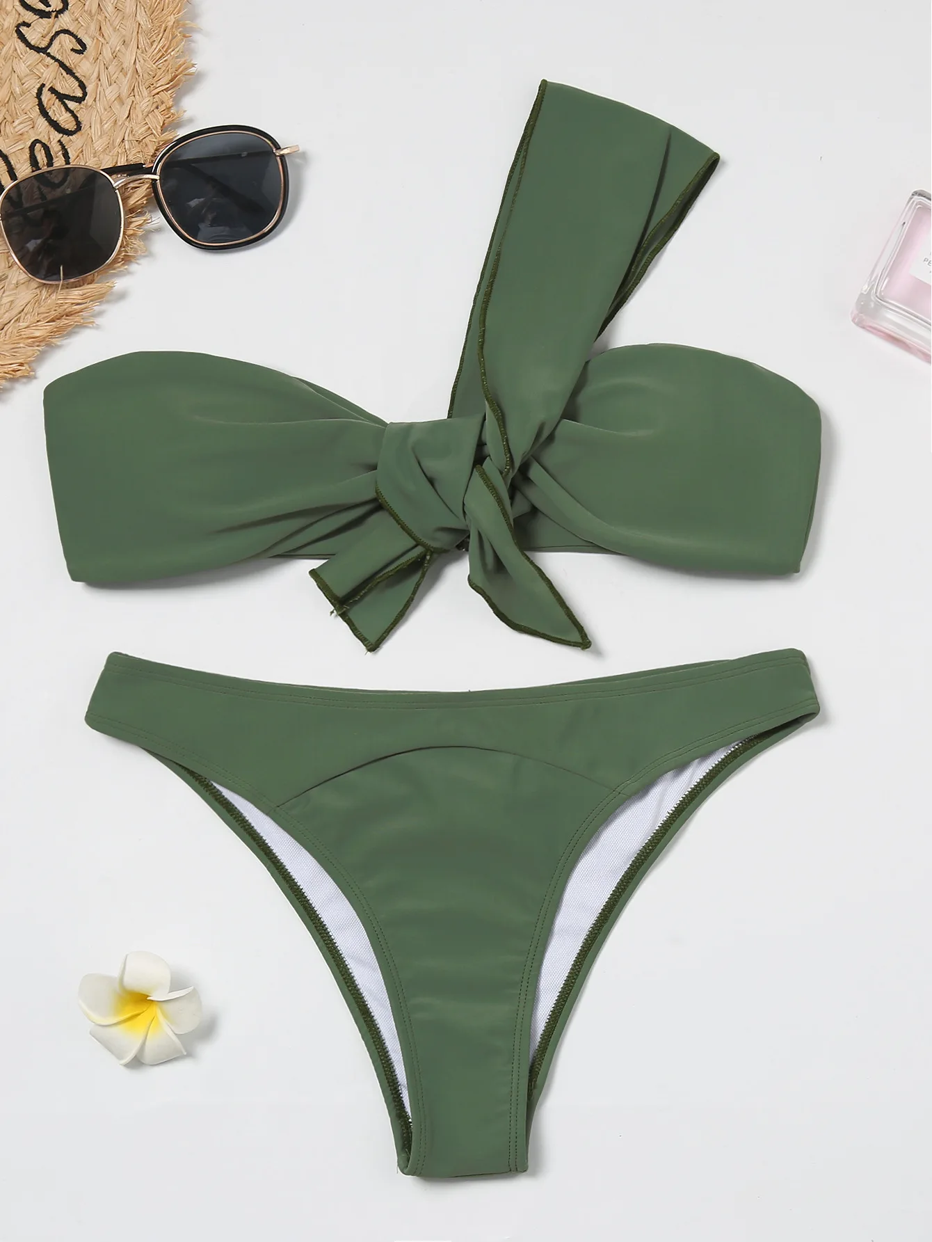 Однотонный комплект бикини армейского зеленого цвета с бантом, Женс...