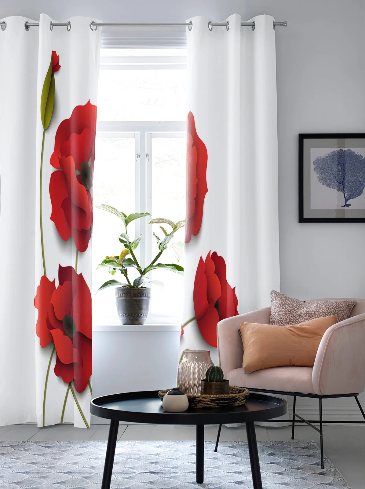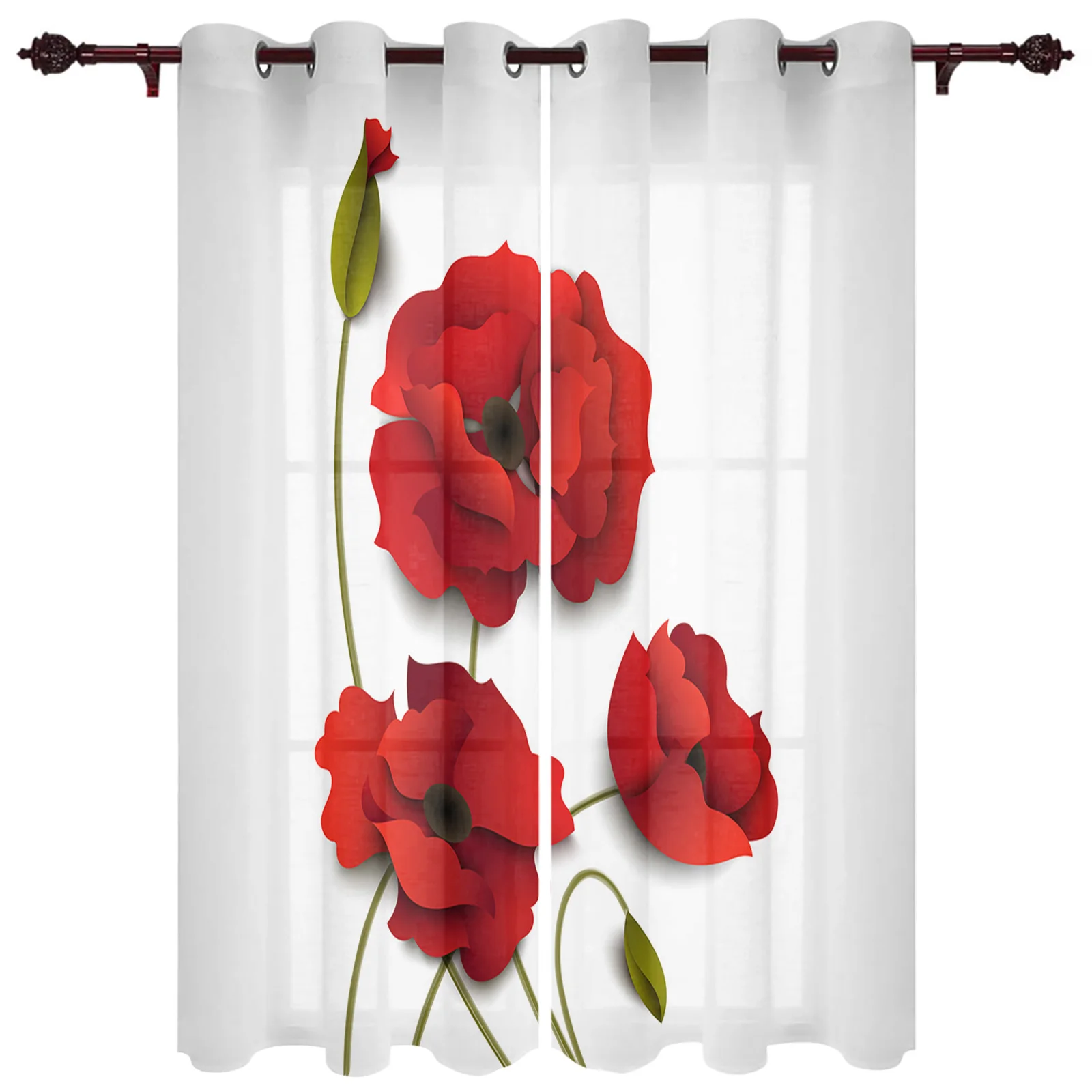 Красный цветок макового цветка окна занавески для гостиной фотообои для детей