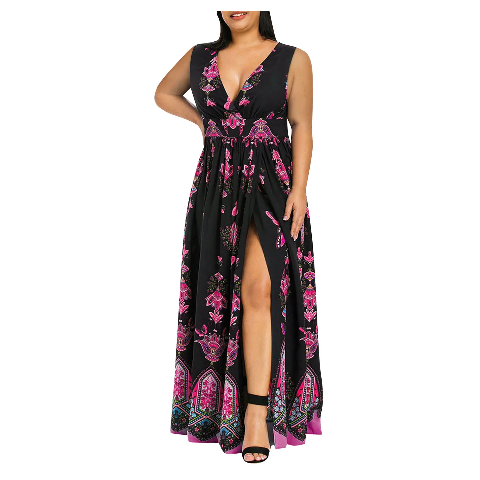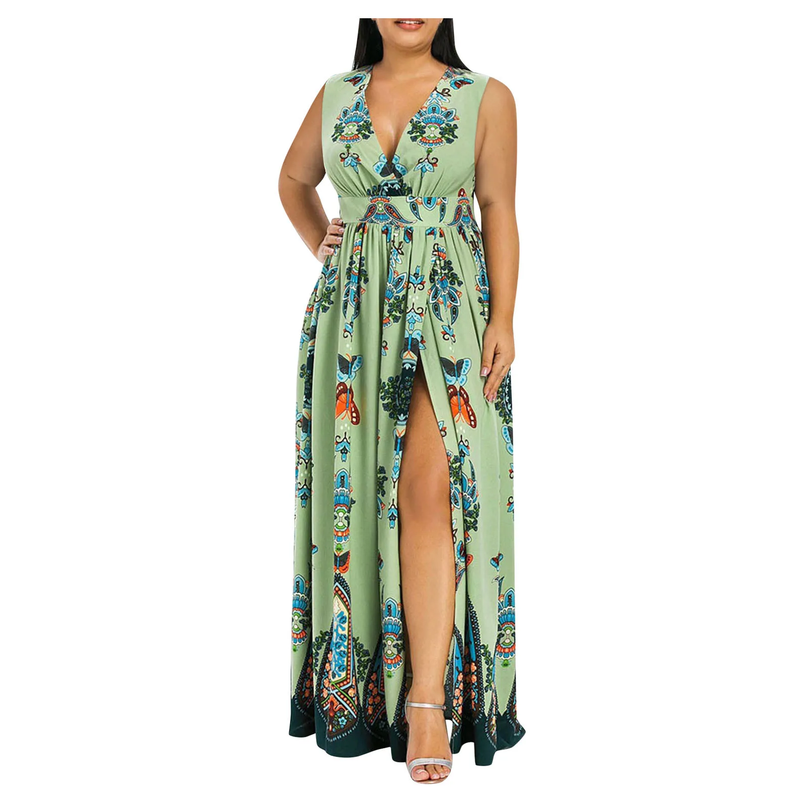 Летнее сексуальное платье, модные женские платья с принтом бабочки и глубоким V-образным вырезом, повседневные Длинные платья без рукавов, сексуальное вечернее платье с разрезом